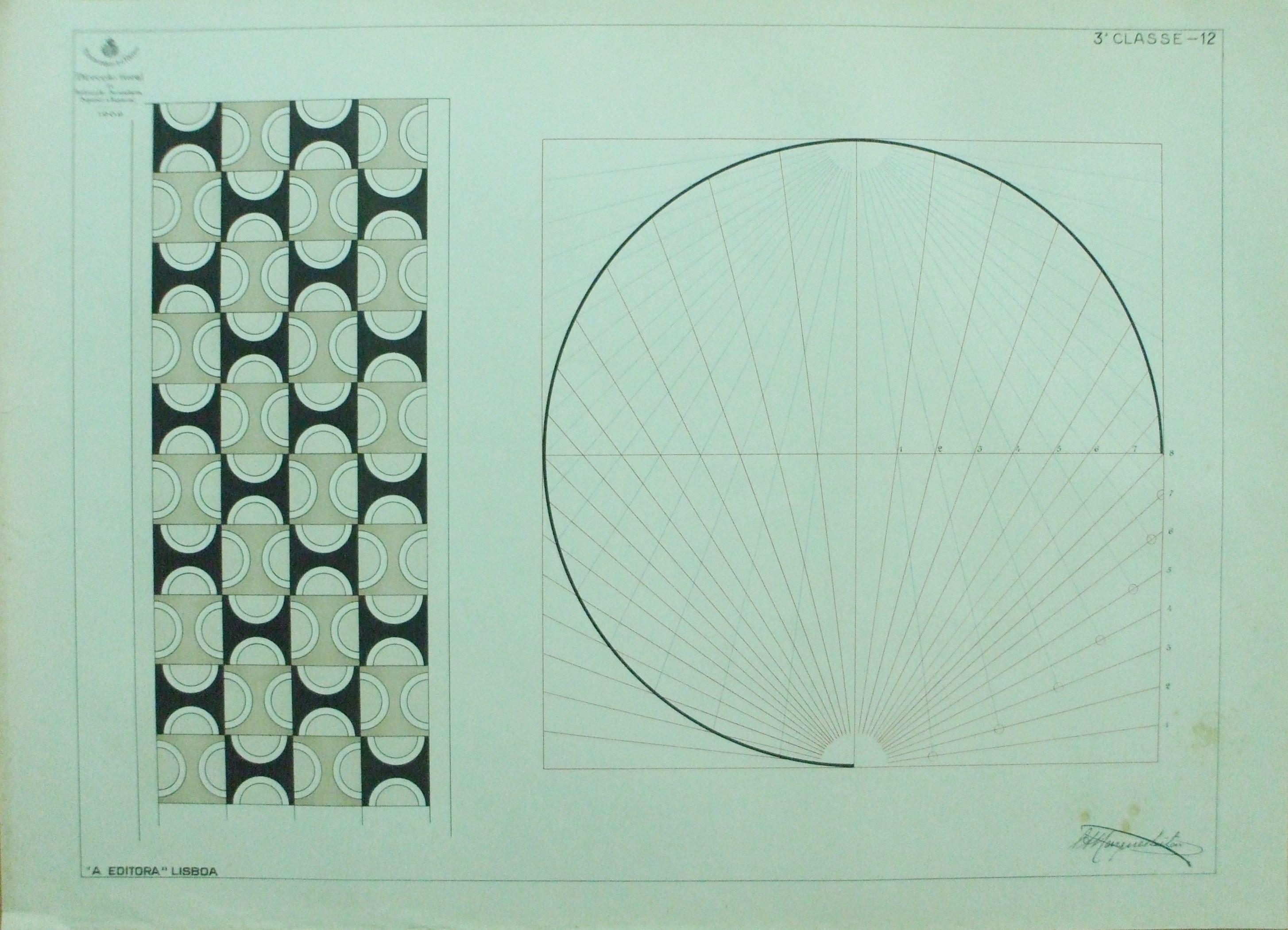 | Observações: | A estampa contém as seguintes informações: No canto superior esquerdo: Imagem do Brasão de Portugal "Ministério do Reino; Direcção Geral da Instrucção Secundária, Superior e Especial; 1909" No canto inferior esquerdo: "A EDITORA" LISBOA No canto superior direito: "3ª Classe - 12" No canto inferior direito: Assinatura do autor: C.A.Marques Leitão É atribuída o nº 12 à estampa e confere com o Livro de Desenho (Livro III). |