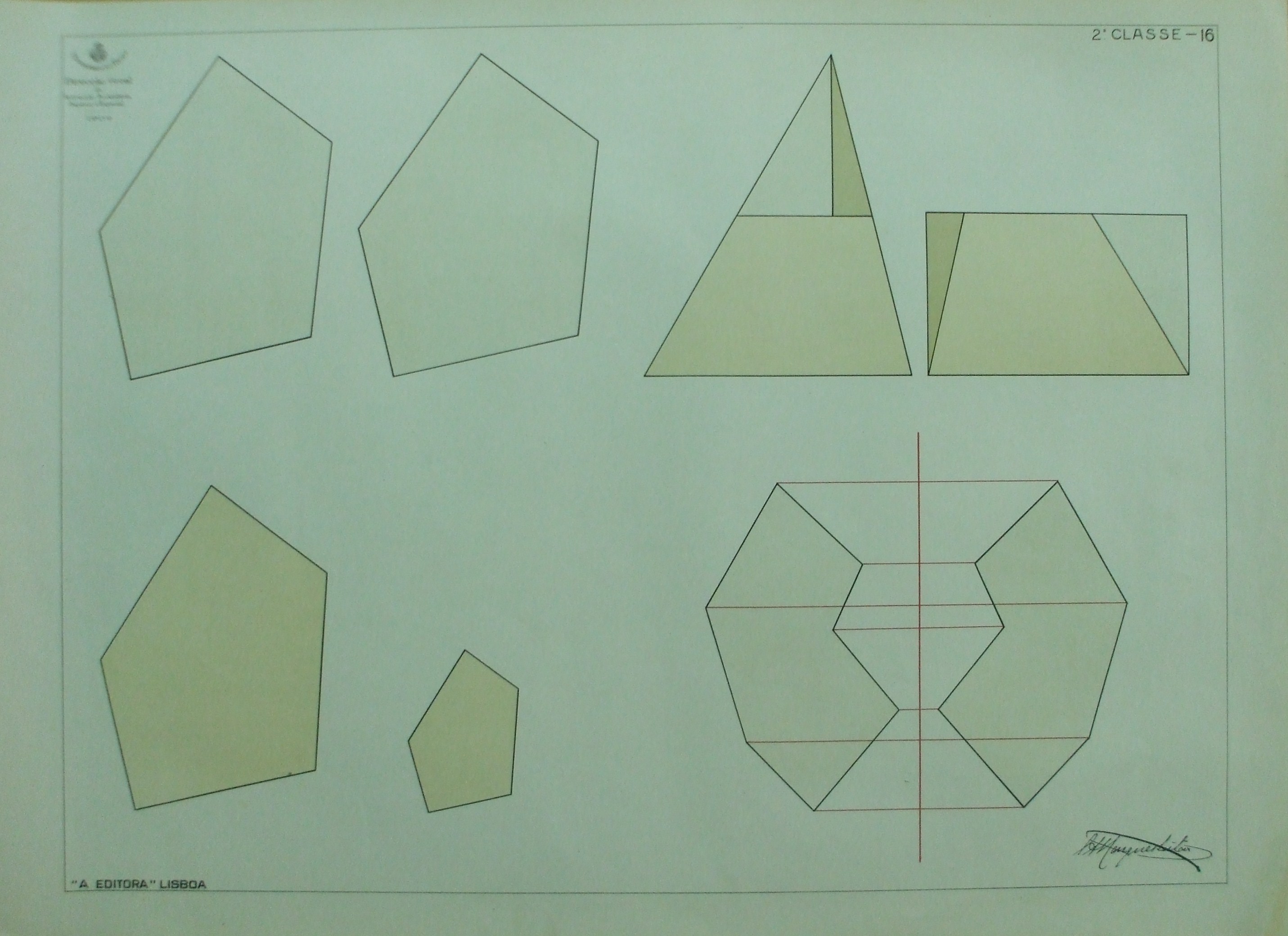 | Observações: | A estampa contém as seguintes informações: No canto superior esquerdo: Imagem do Brasão de Portugal "Ministério do Reino; Direcção Geral da Instrucção Secundária, Superior e Especial; 1909" No canto inferior esquerdo: "A EDITORA" LISBOA No canto superior direito: "2ª Classe - 16" No canto inferior direito: Assinatura do autor: C.A.Marques Leitão É atribuída o nº 16 à estampa, no entanto no Livro de Desenho (Livro II), o número da estampa é o 1. Existem dois exemplares da estampa, cujos nrs. de inventário são: MPL6849ED e MPL6857ED. |