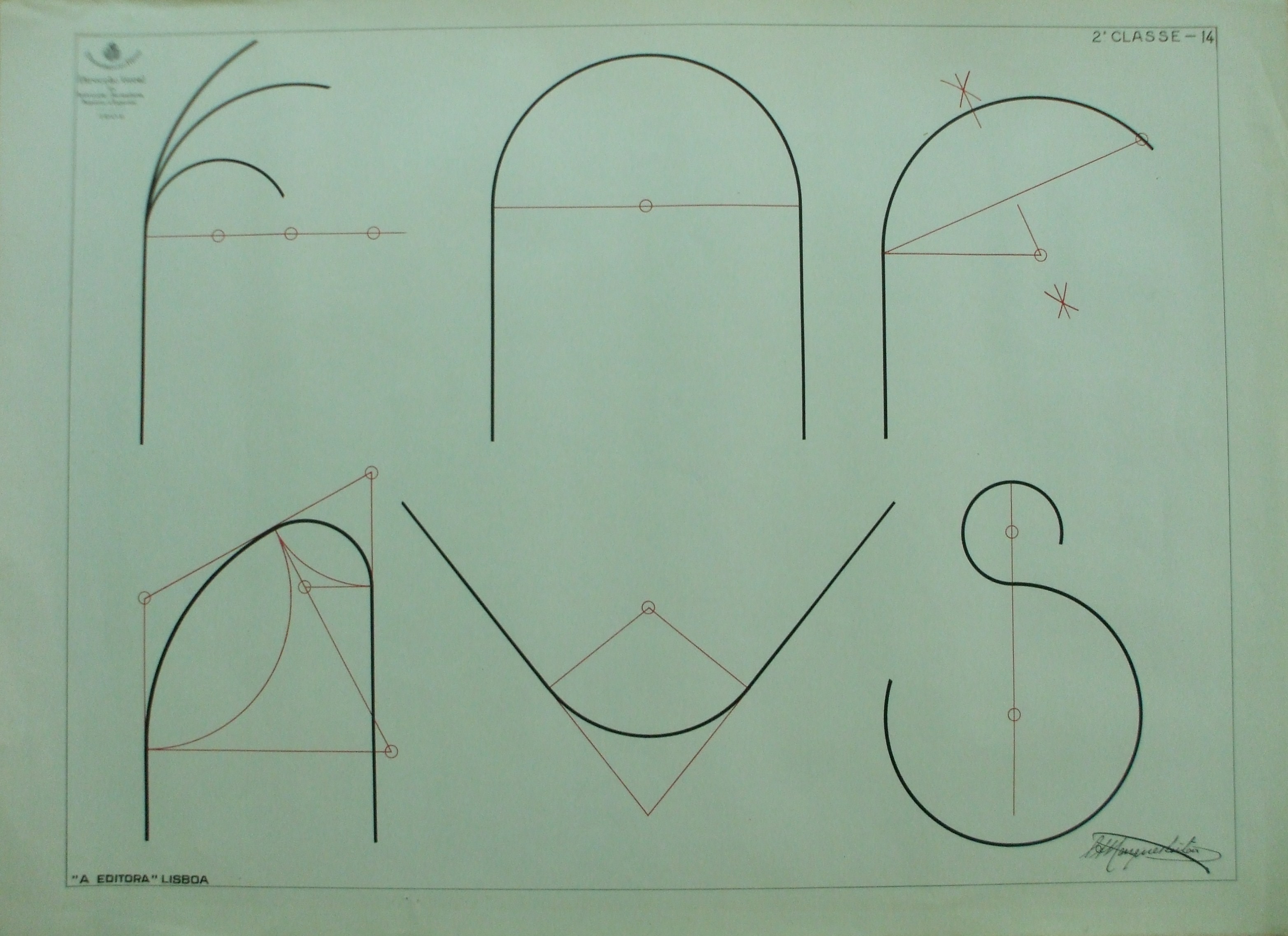 | Observações: | A estampa contém as seguintes informações: No canto superior esquerdo: Imagem do Brasão de Portugal "Ministério do Reino; Direcção Geral da Instrucção Secundária, Superior e Especial; 1909" No canto inferior esquerdo: "A EDITORA" LISBOA No canto superior direito: "2ª Classe - 14" No canto inferior direito: Assinatura do autor: C.A.Marques Leitão É atribuída o nº 14 à estampa, no entanto no Livro de Desenho (Livro II), o número da estampa é o 22. Existem dois exemplares da estampa cujos nrs de inventários são: MPL6851ED e MPL6859ED. |