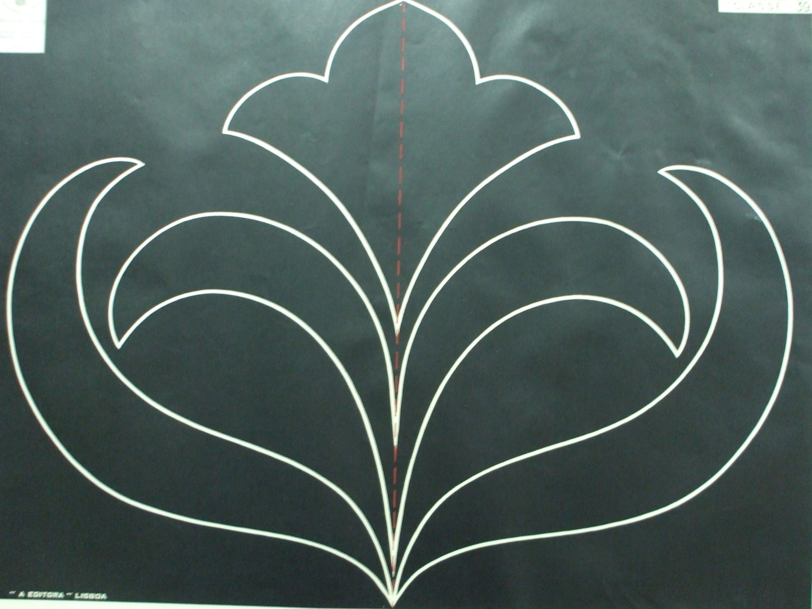 | Descrição: | Estampa 1ª Classe - 39 A estampa contém uma figura formada por linhas curvas simétricas e que compõe uma forma vegetal decorativa. |