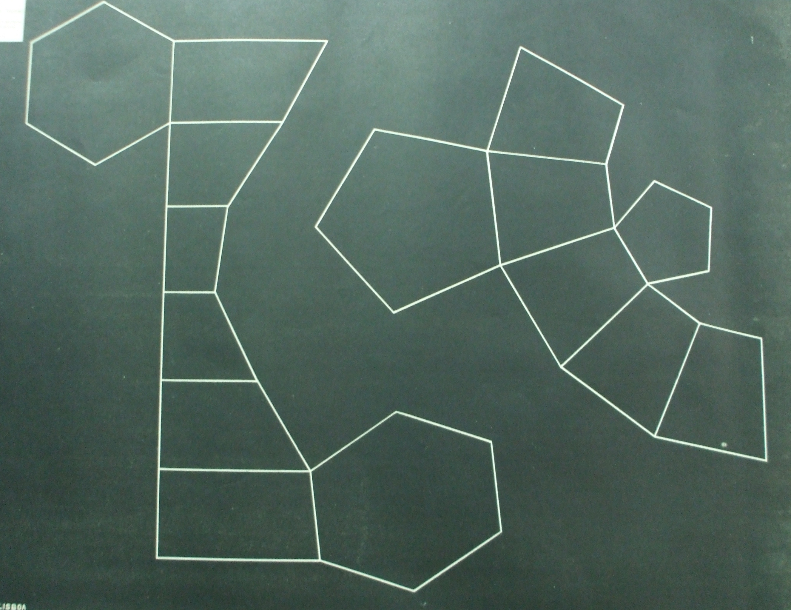 | Descrição: | Estampa 4ª Classe-16 A estampa possui duas figuras que representam, a planificação dum tronco de prisma hexagonal e a planificação do tronco duma piramide pentagonal. |