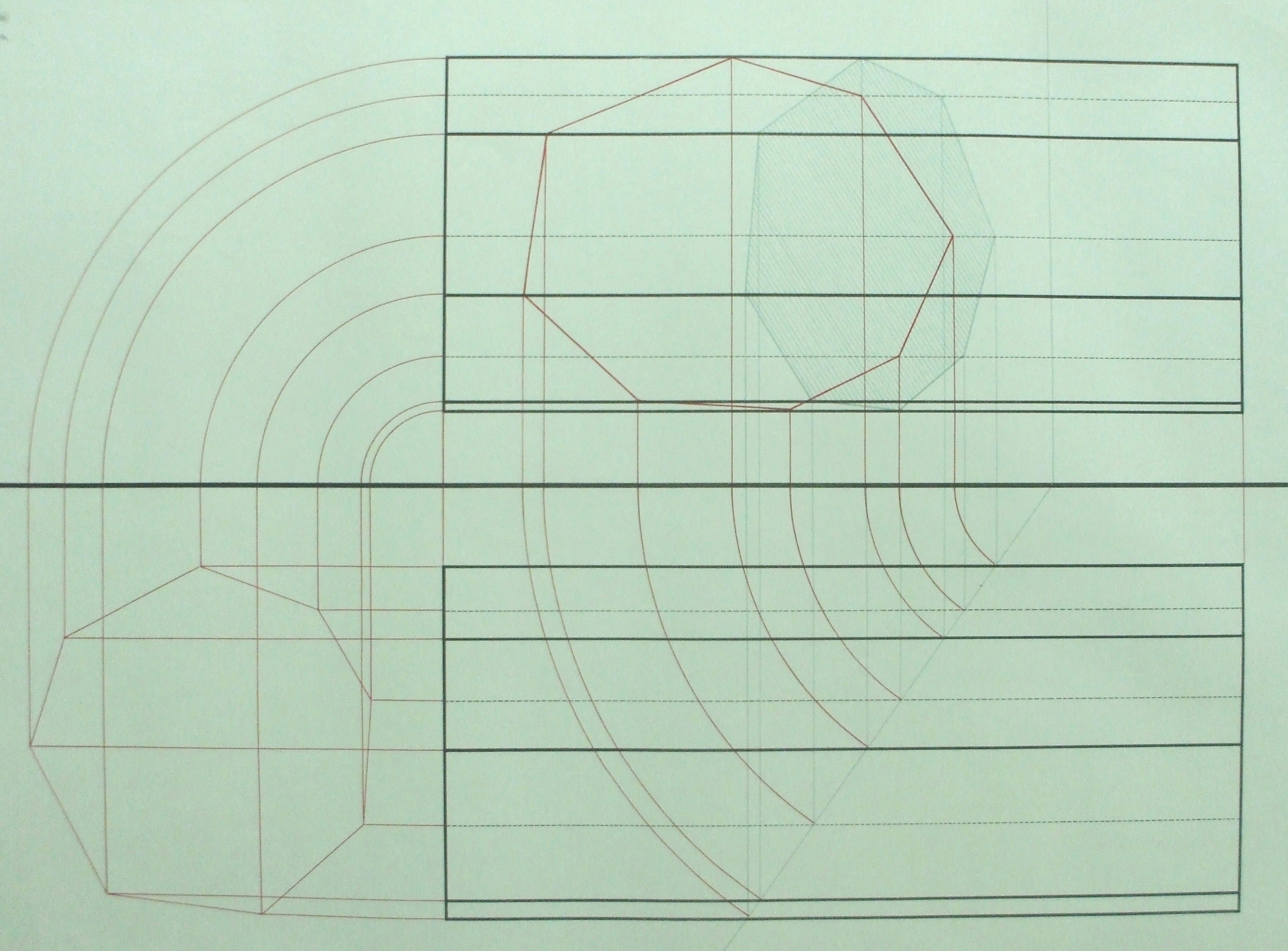 | Descrição: | Estampa 4ª Classe - 19 A estampa representa a projeção de um prisma octogonal recto, com arestas laterais paralelas aos planos de projeção. |