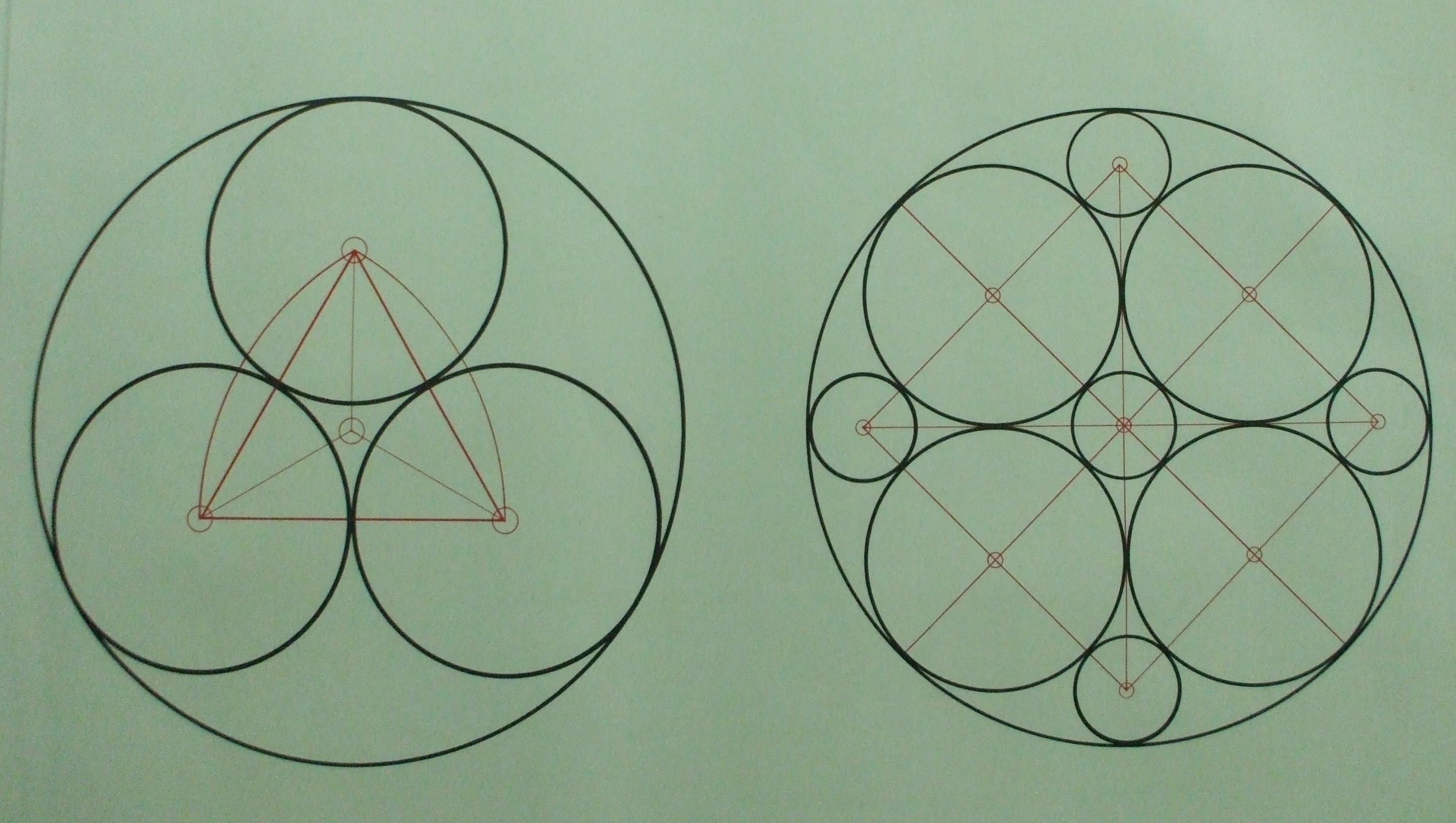 | Descrição: | Estampa 2ª Classe - 12 A estampa contém duas figuras, compostas por circunferências tangentes entre si e aos lados de alguns polígonos regulares. |