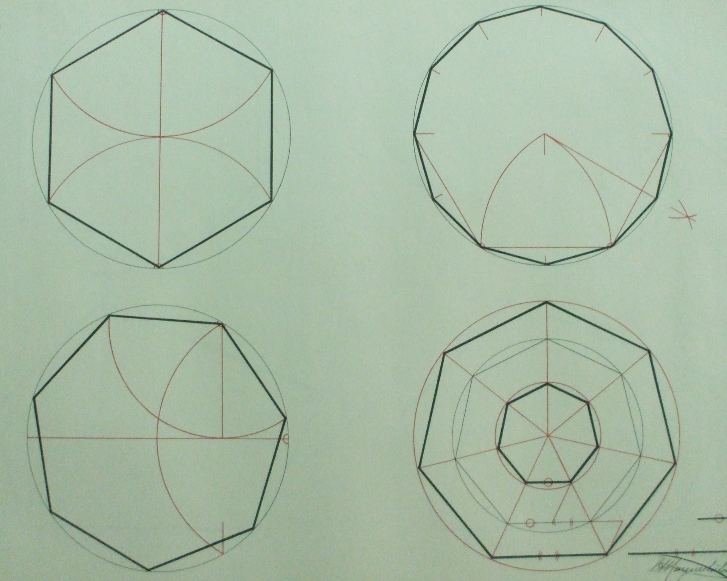 | Descrição: | Estampa 2ª Classe - 5 A estampa contém quatro figuras geométricas inscritas num circulo. Estas representam a forma de realizar as figuras, nomeadamente a determinação dos raios. As figuras representam um hexágono regular, um dodecágono e dois heptágonos. |