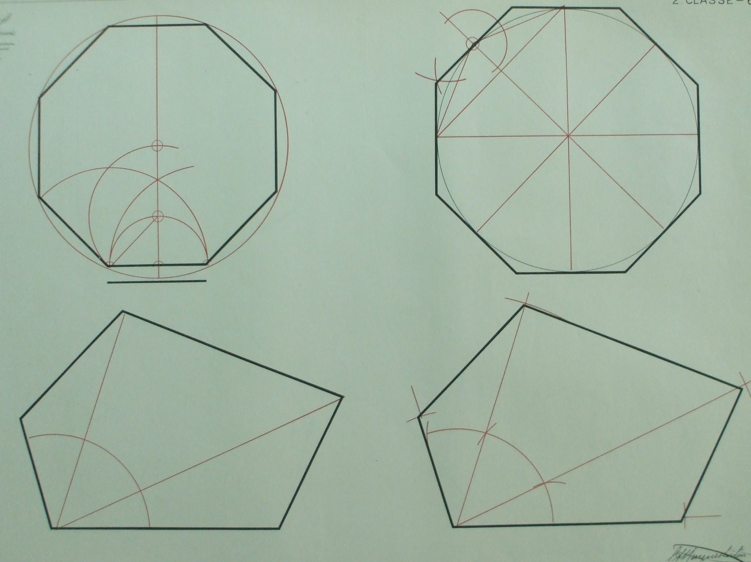 | Descrição: | Estampa 2ª Classe - 6 A estampa contém quatro figuras geométricas que representam a construção dum octógono regular, dum octógono circunscrito num circulo e dois polígonos irregulares. |
