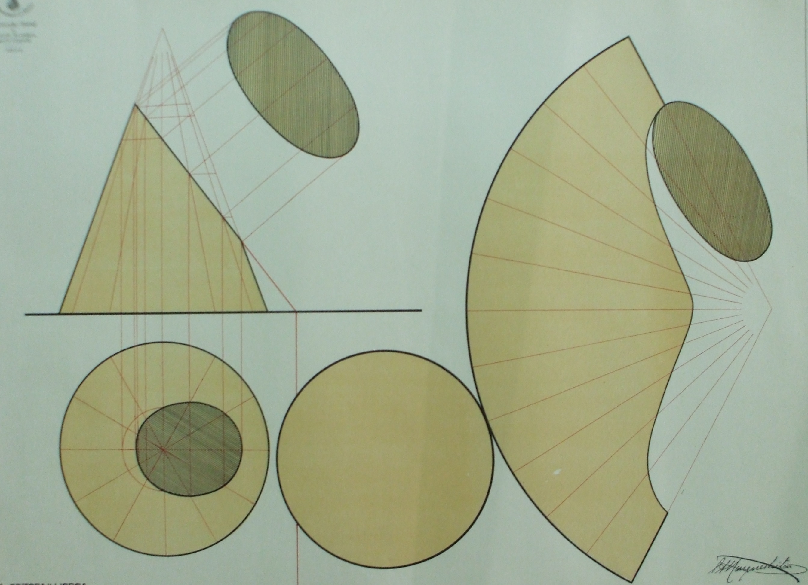| Descrição: | Estampa 5ª Classe - 8 A estampa contém várias figuras para determinar formas geométricas. A curva determinada pela seção produzida por um plano num cone de revolução, é uma elipse, uma hipérbole ou uma parábola, conforme a inclinação que tiver o plano secante. |