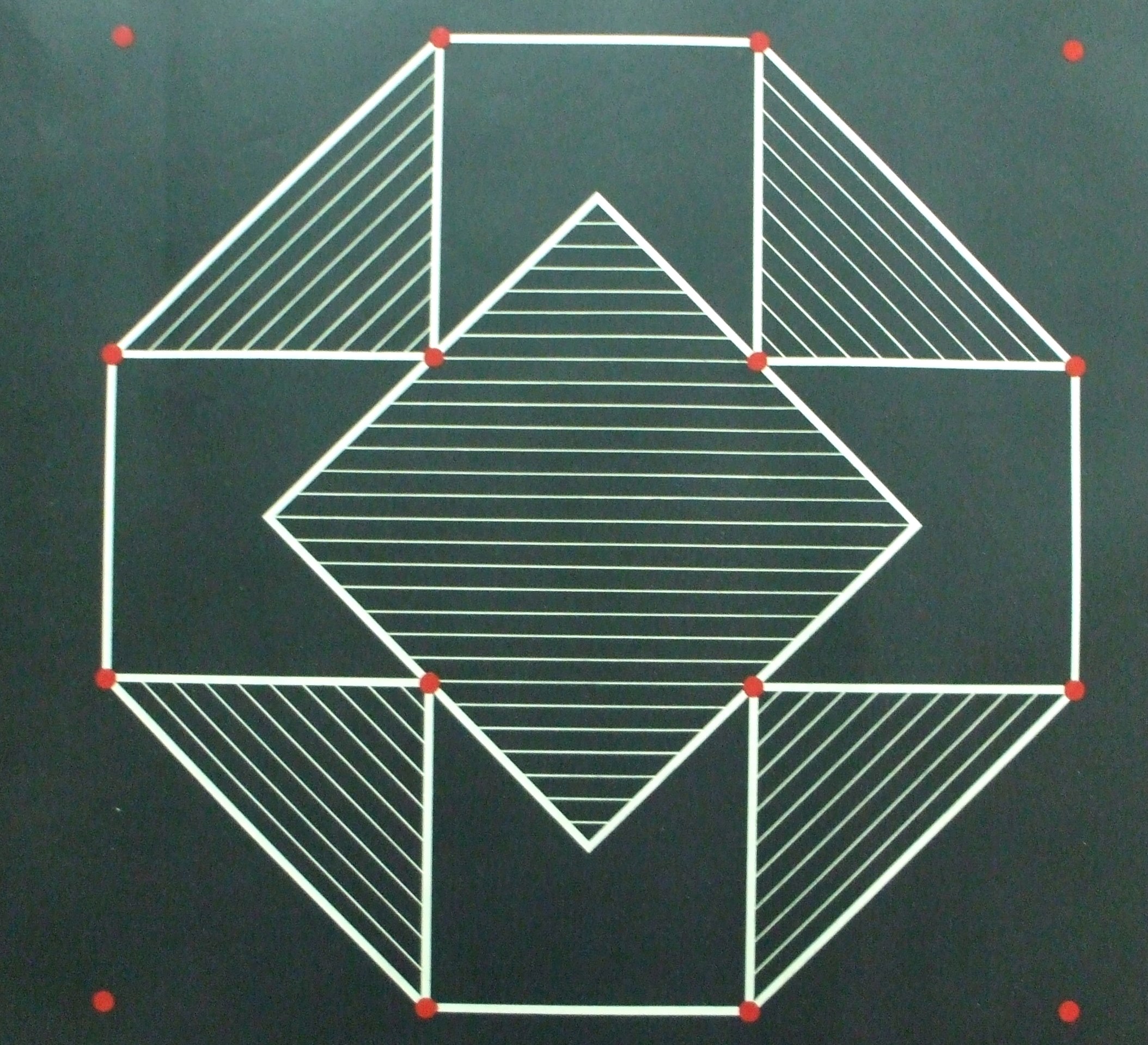 | Descrição: | Estampa 1ª Classe - 24 A estampa contém uma figura geométrica, um octógono, feito a partir de um quadrado utilizando stigmas e tracejados. |