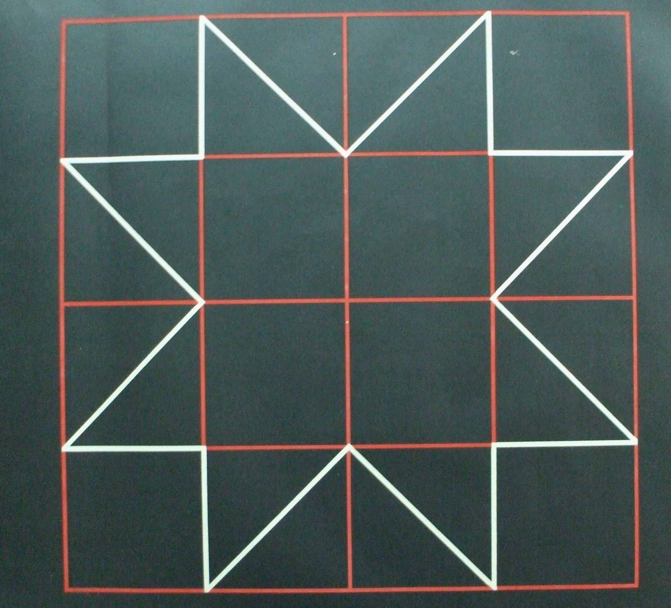| Descrição: | Estampa 1ª Classe -19 A estampa representa uma forma geométrica tendo como base o quadrado, com aplicações da divisão de segmentos de rectas em partes iguais. |