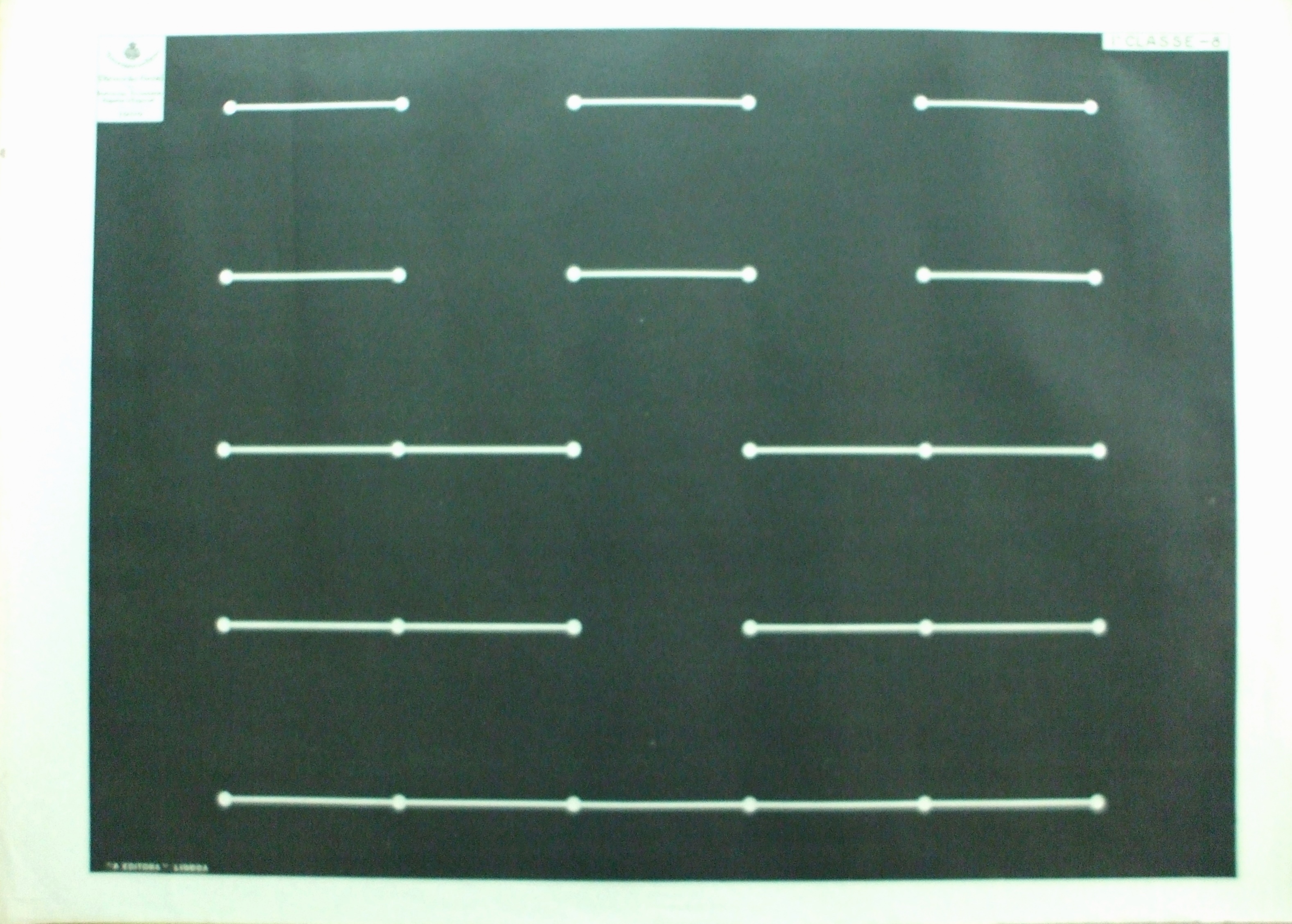 | Descrição: | Estampa 1ª Classe - 8 A estampa representa a determinação da rede estimográfica, que consiste em unir os pontos com as linhas seguindo direções indicadas. |