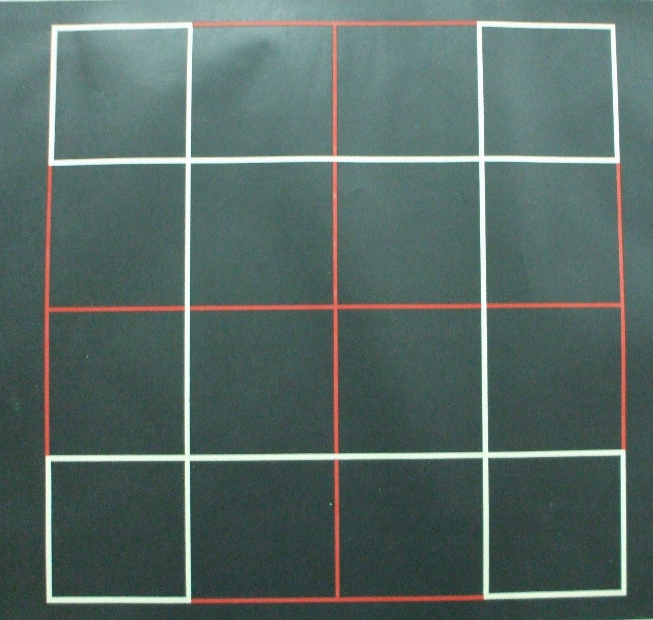 | Descrição: | Estampa 1ª Classe-18 A estampa representa a construção de uma forma geométrica tendo como base o quadrado com aplicações da divisão de segmentos de retas em partes iguais. |