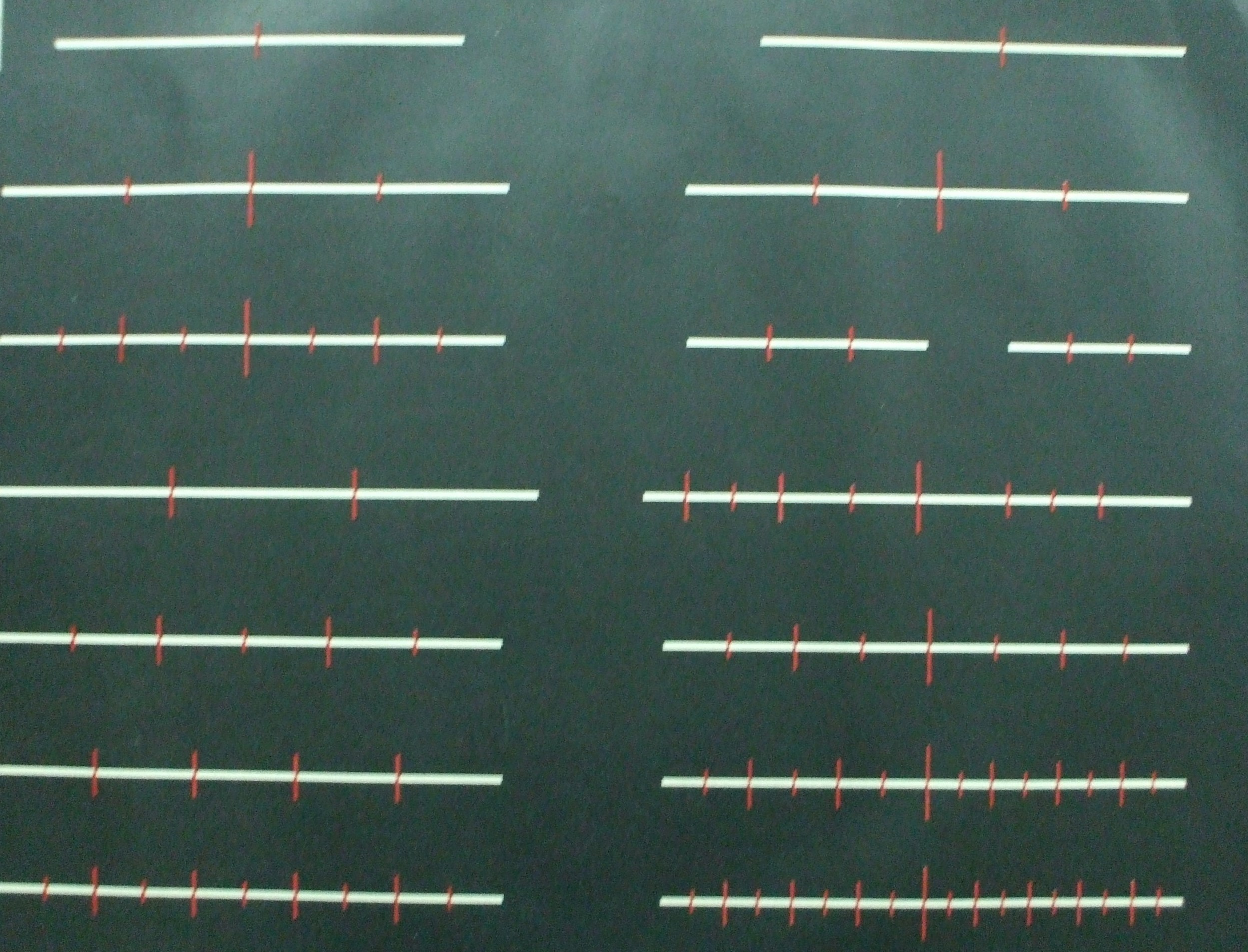 | Descrição: | Estampa 1ª Classe - 15 A estampa contém vários exemplos de segmentos de retas com divisões em duas, três, quatro e seis partes iguais. |