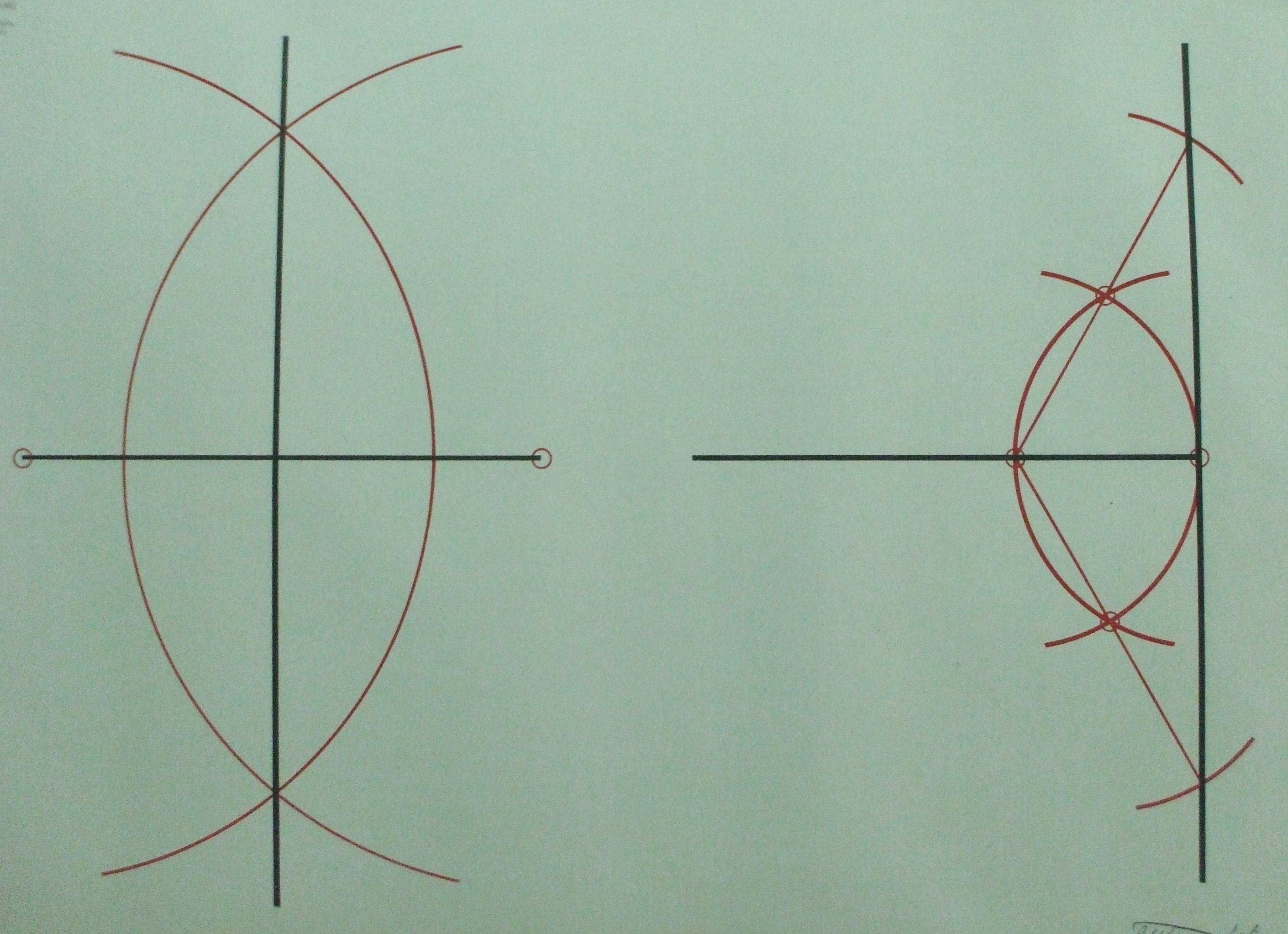 | Descrição: | Estampa 1ª Classe-43 A estampa contém duas figuras que representam a construção de uma perpendicular no centro dum segmento de reta. |