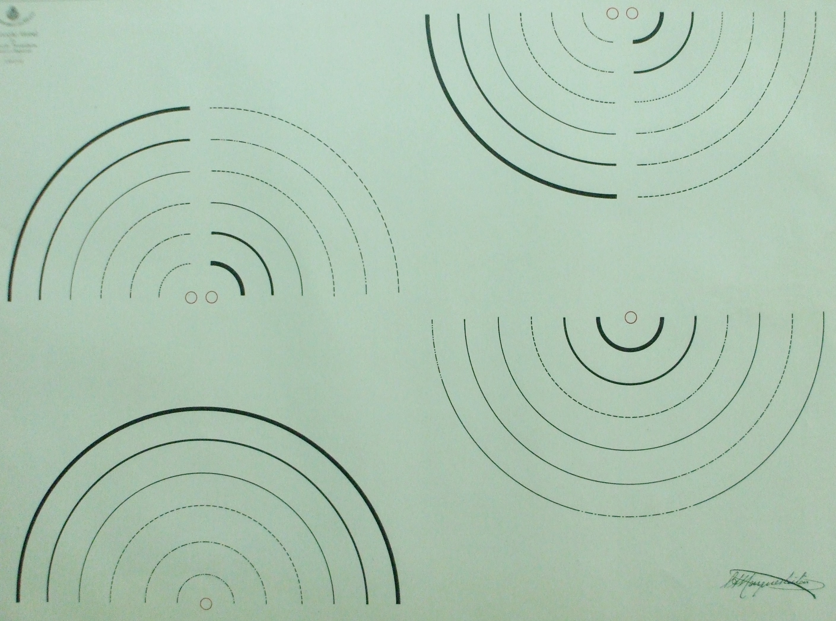 | Descrição: | Estampa 1ª Classe- 41 A estampa contém quatro figuras que representam a construção de arcos de círculo. São feitos com linhas cheias, com traços, com traço e um e dois pontos, ou apenas com pontos. |