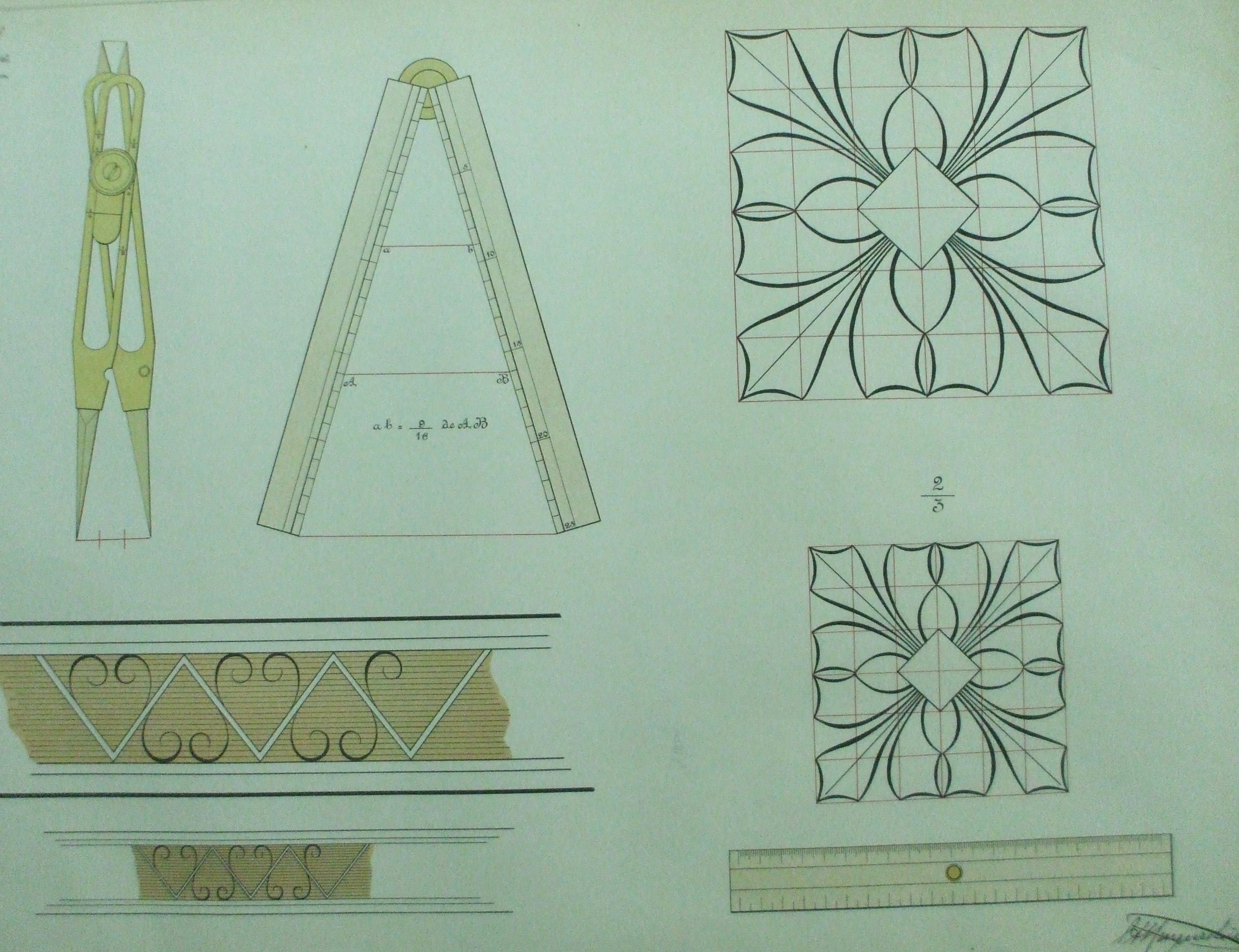 | Descrição: | Estampa 3ª Classe - 2 A estampa contém sete figuras que representam aplicações com o compasso de redução e o compasso. |