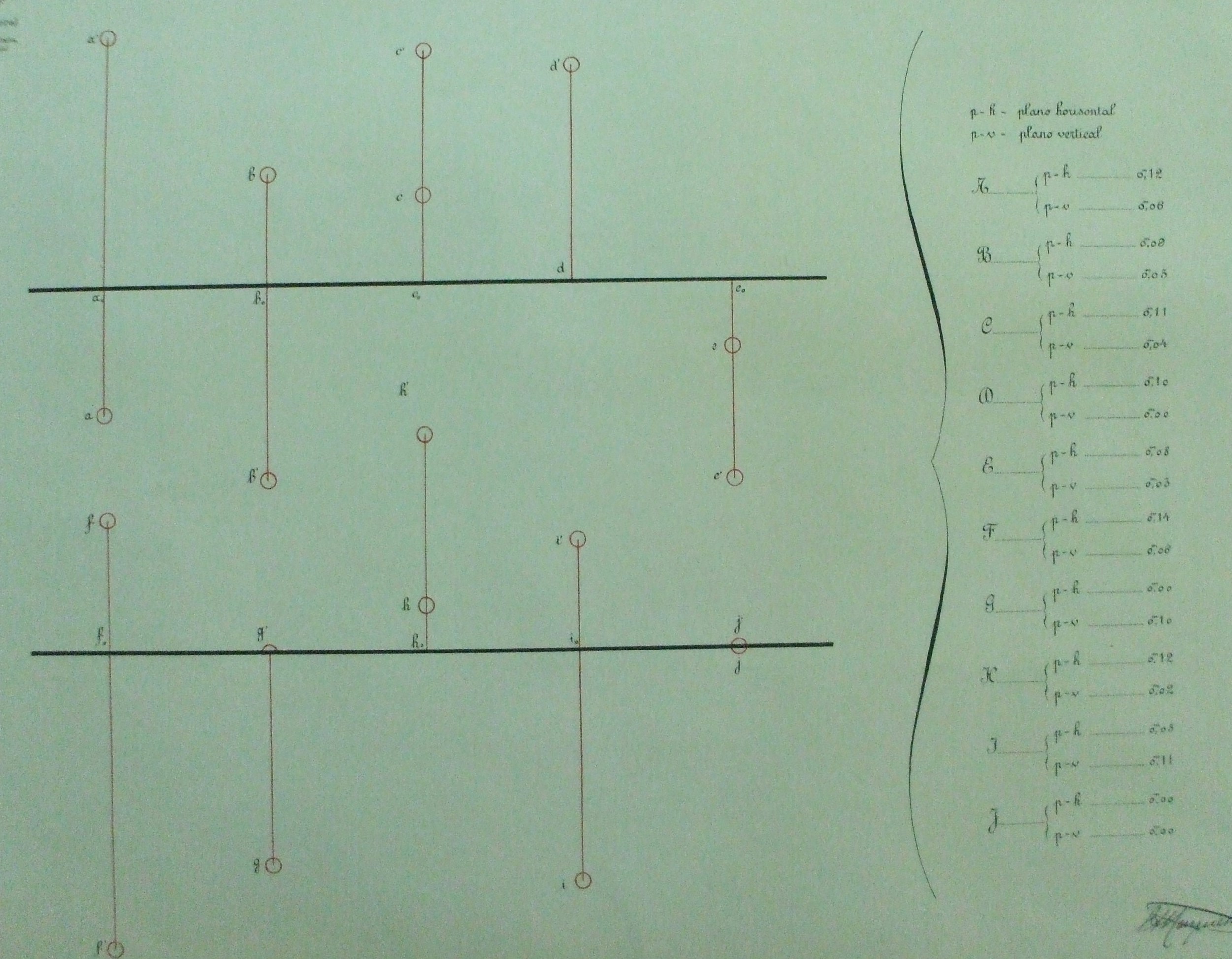 | Descrição: | Estampa 3ª Classe - 22 A estampa representa a projeção de pontos em diferentes quadrantes, dadas as cotas e os afastamentos. |