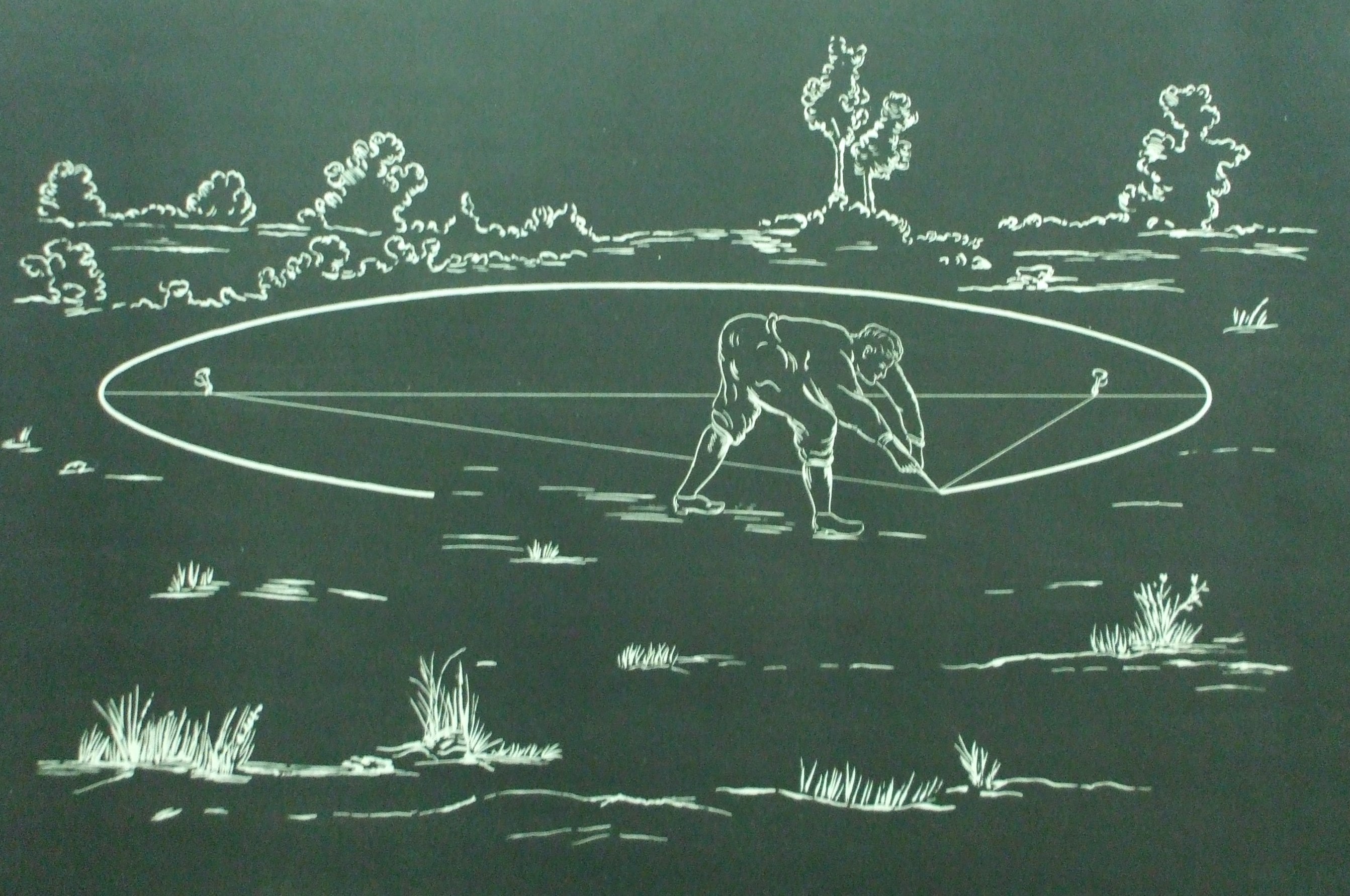 | Descrição: | Estampa 3ª Classe - 6 A estampa representa o processo de traçar uma elipse no terreno. |