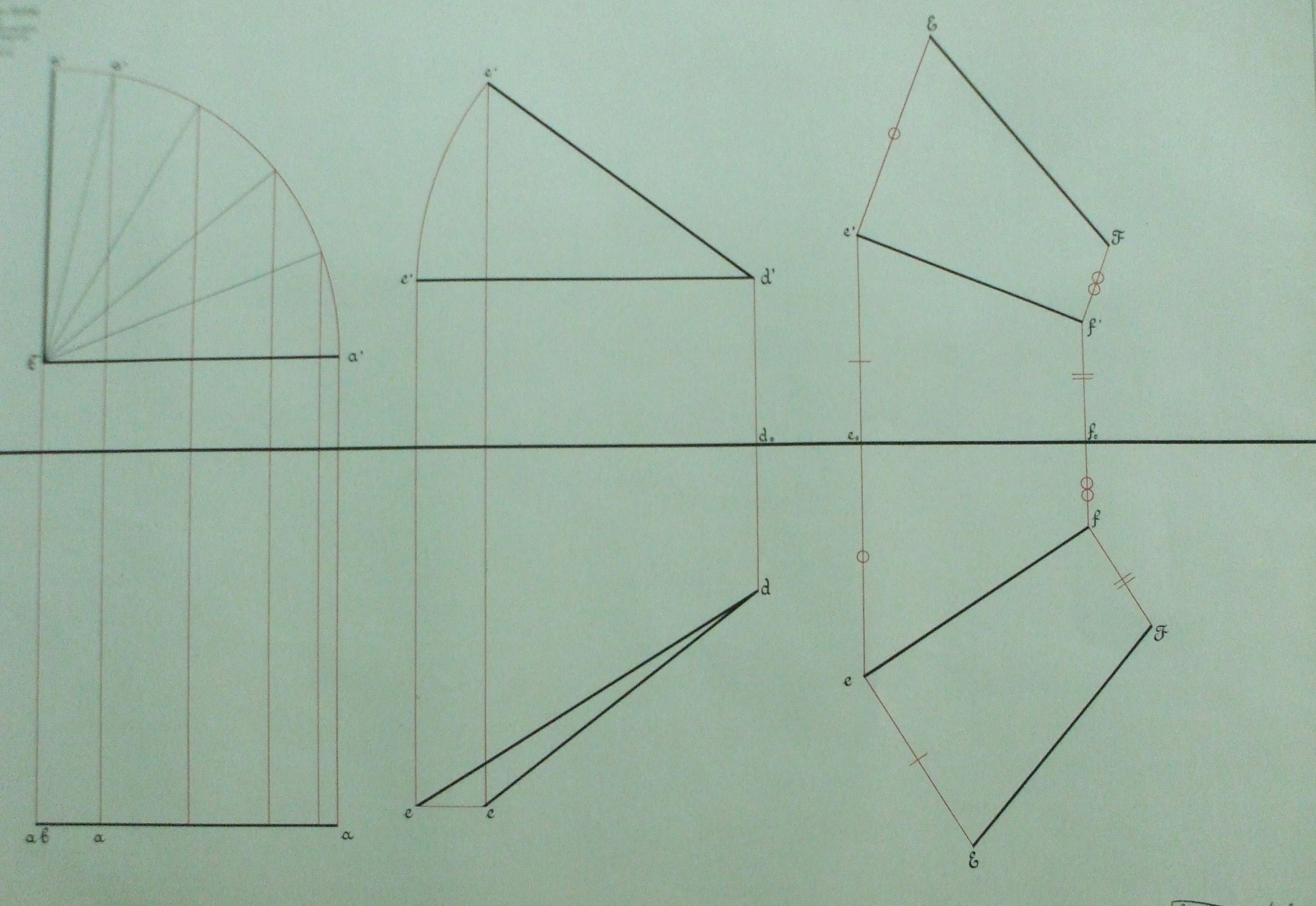| Descrição: | Estampa 3ª Classe - 32 A estampa contém três figuras de segmentos de reta. São determinadas as projeção das mesmas no plano horizontal (figura do lado esquerdo) e no plano oblíquo (restantes figuras). |