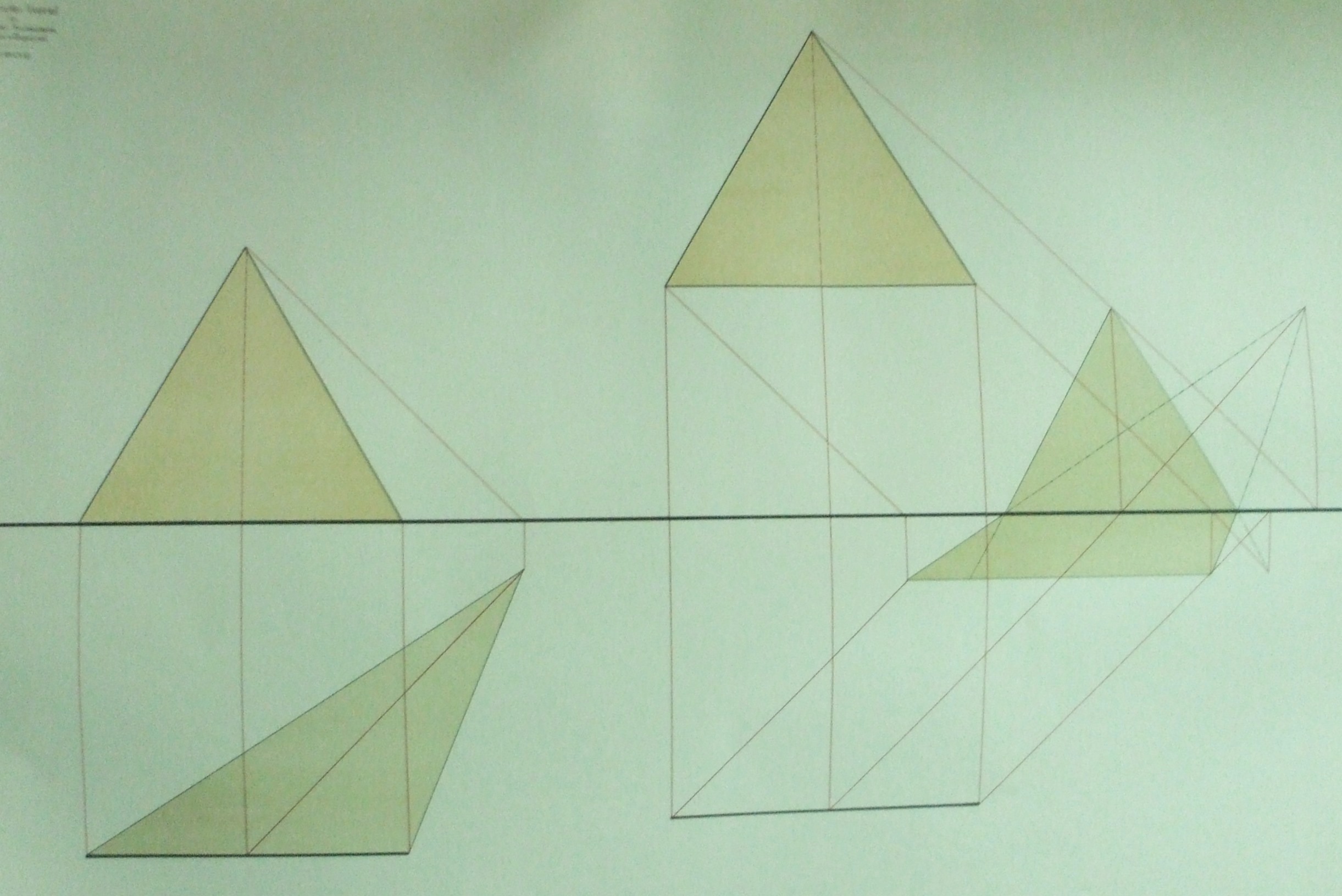 | Descrição: | Estampa 4ª Classe - 34 A estampa contém dois exemplos de determinação de sombras em superfícies triangulares. O exemplo do lado esquerdo representa a determinação da sombra duma superfície triangular, dadas as projeções. No exemplo do lado direito são dadas as projeções de uma superfície triangular onde são determinadas as sombras nos planos horizontal e vertical. |