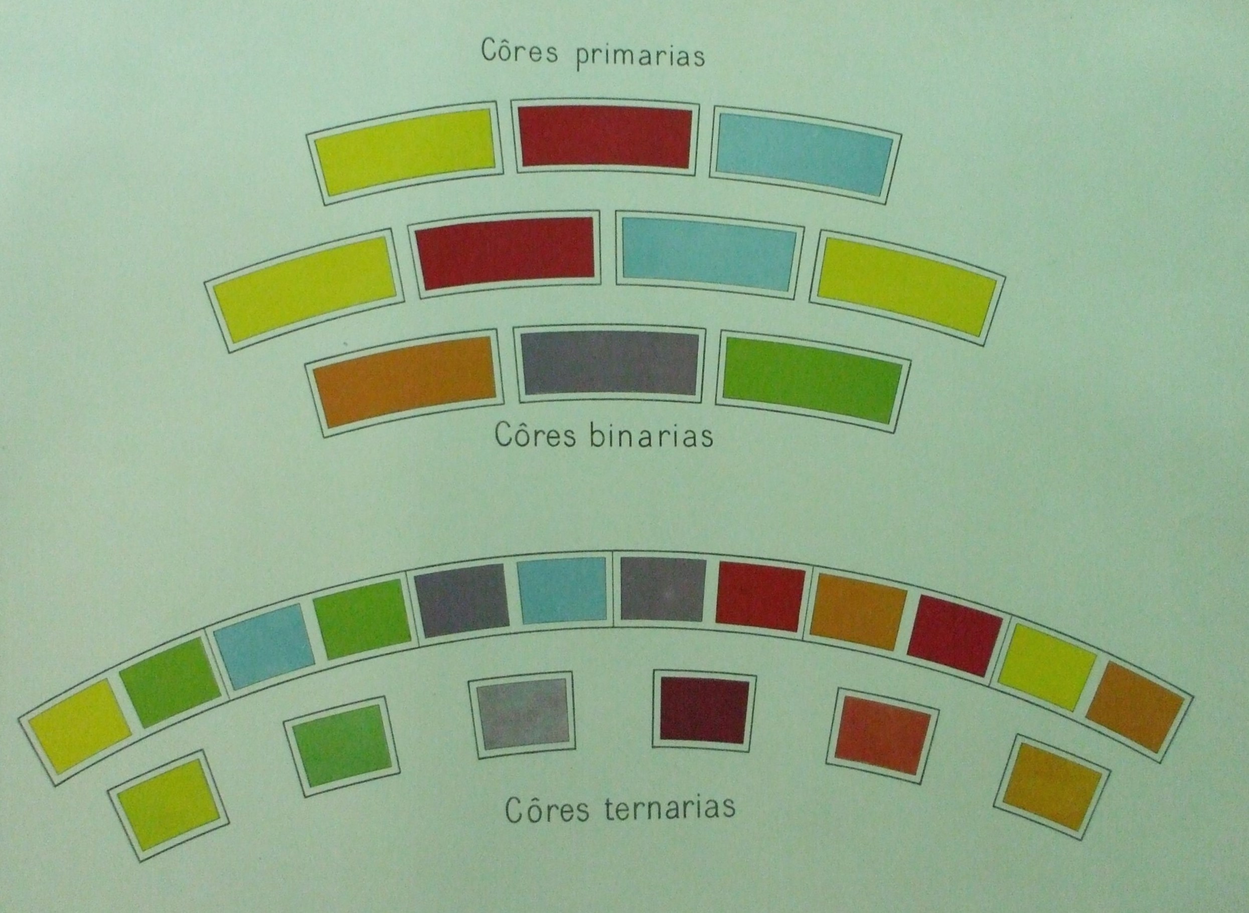 | Descrição: | Estampa 4ª Classe - 51 A estampa representa as cores primárias, as cores binárias e as cores ternárias. |