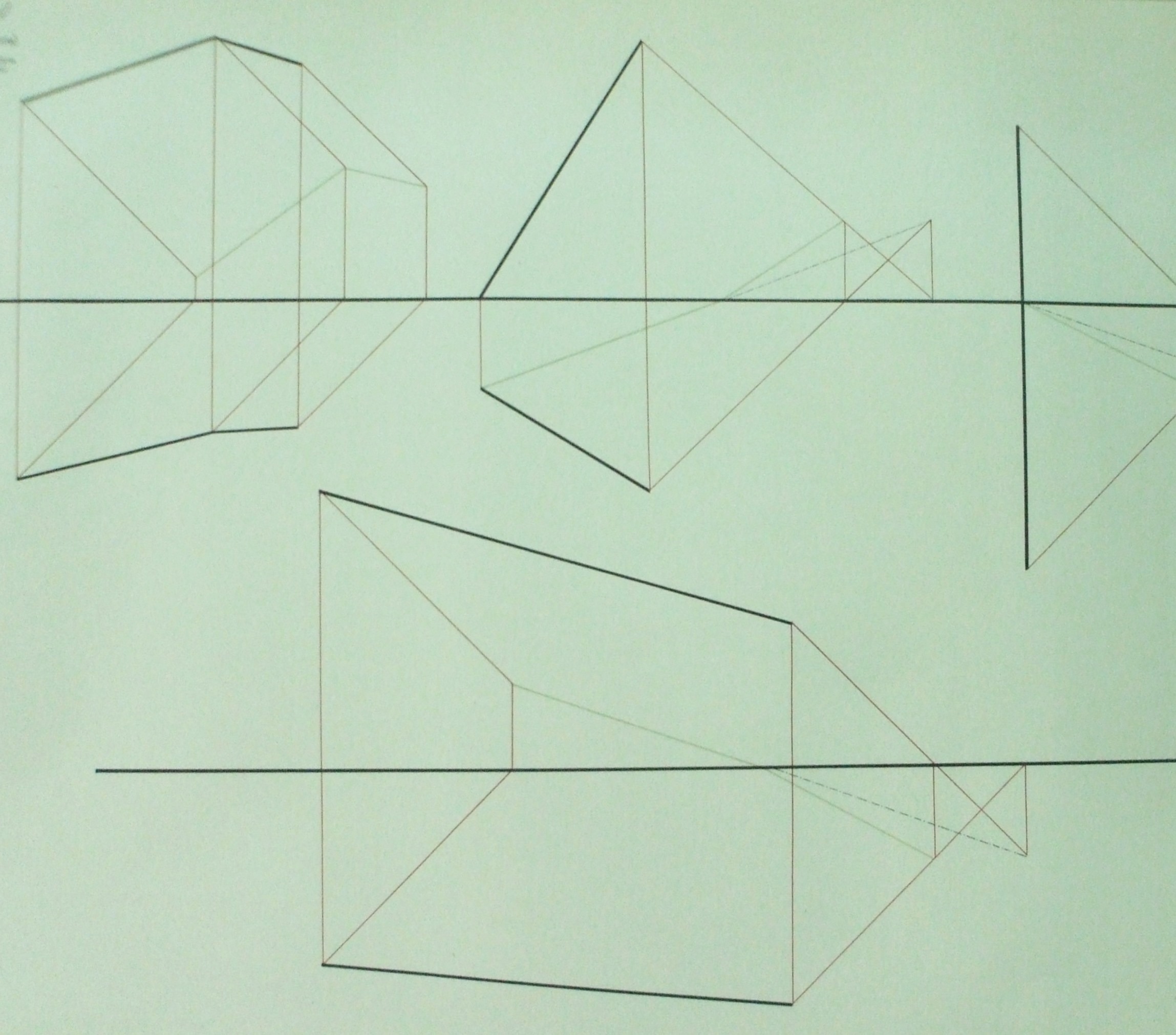 | Descrição: | Estampa 4ª Classe - 32 A estampa contém quatro exemplos de determinação de sombra de segmentos de reta. Considerando a posição dos exemplos na parte superior do lado esquerdo para o lado direito, as figuras representam: - A sombra definida no plano vertical produzida por uma linha quebrada. - Sombra de um segmento de reta no plano horizontal e no plano vertical. - São dadas as projeções de um segmento de reta onde é determinada a sombra no plano vertical. - São dados dois planos de projeção dum segmento de reta e é determinada a sombra, representada por uma linha quebrada, nos planos horizontal e vertical. |