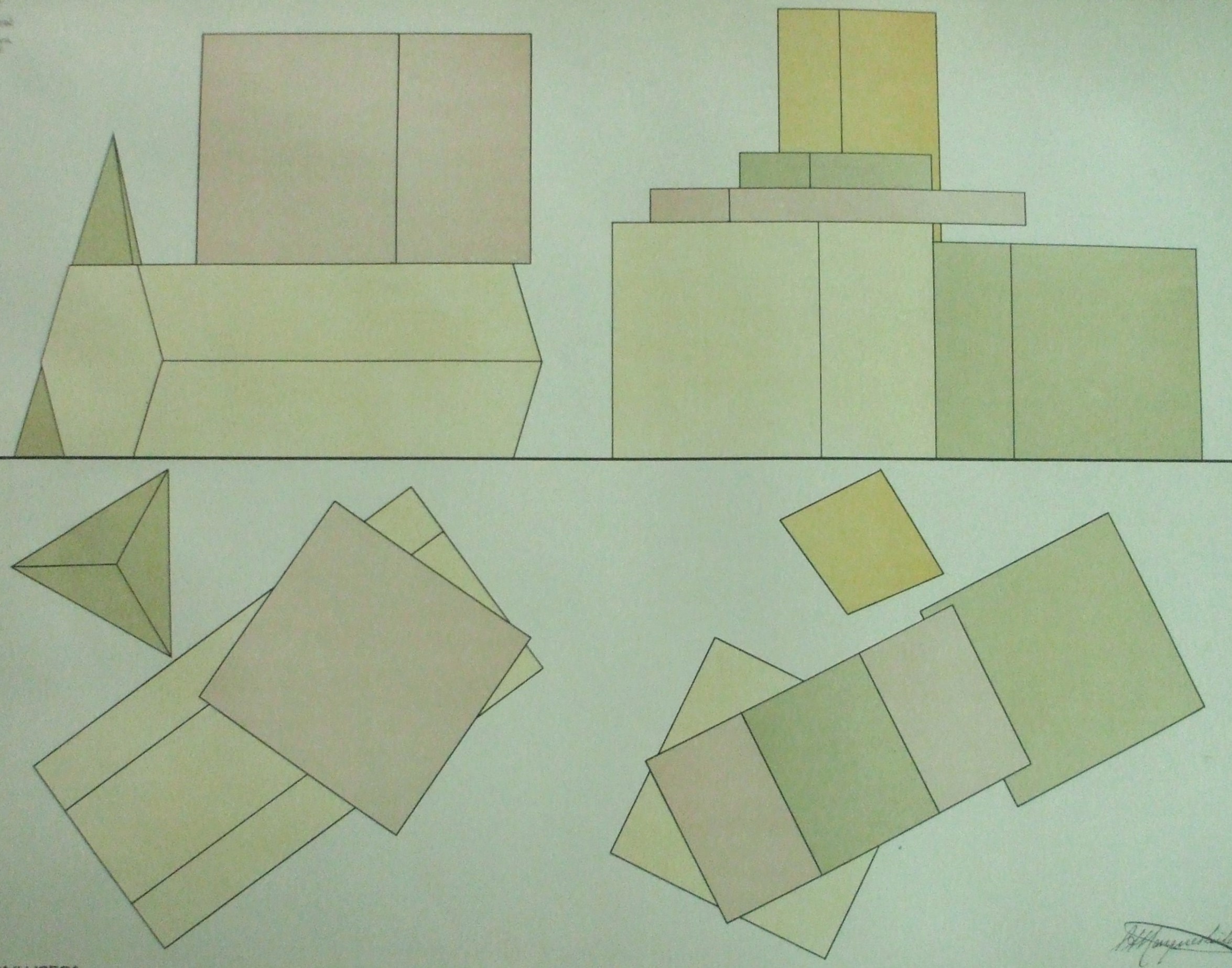 | Descrição: | Estampa 4ª Classe - 26 A estampa representa um conjunto de sólidos geométricos em várias posições e o esboço das suas projeções. Após a observação do que é visível em vários planos, é determinado com rigor as grandezas, cotas e afastamento e executa-se o desenho definitivo. |