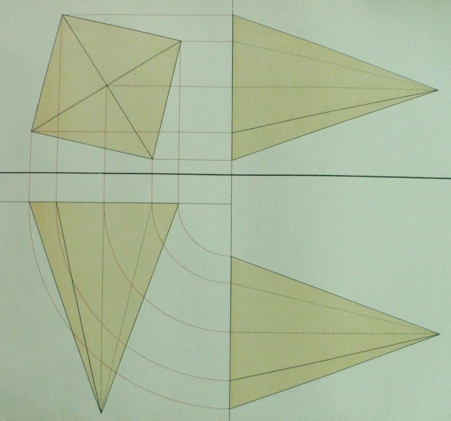 | Descrição: | Estampa 4ª Classe - 20 A estampa representa a projeção de uma pirâmide quadrangular regular, tendo a base paralela ao plano vertical. |