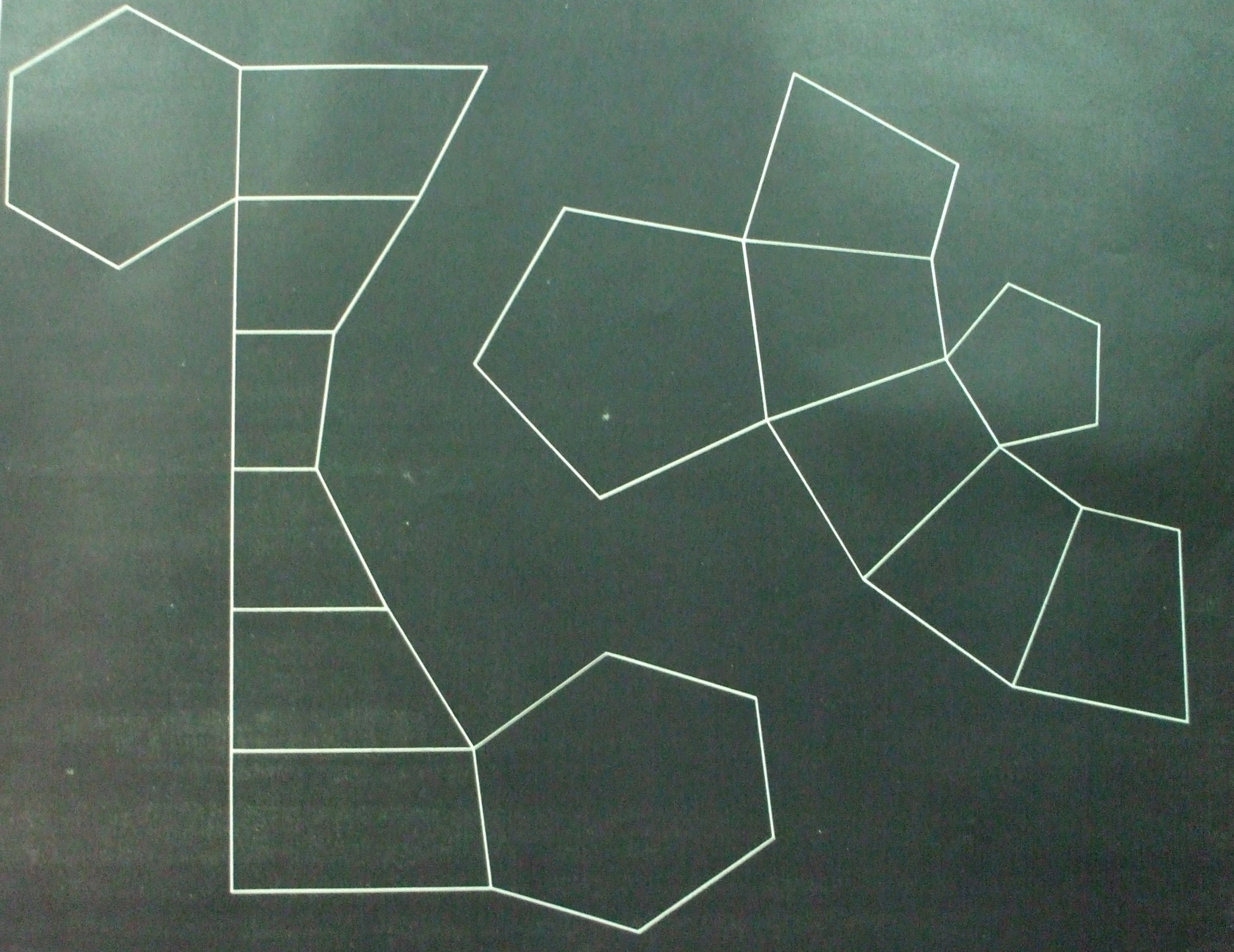| Descrição: | Estampa 4ª Classe-16 A estampa contém duas figuras que representam a planificação do tronco de um prisma hexagonal e a planificação do tronco de pirâmide pentagonal. |
