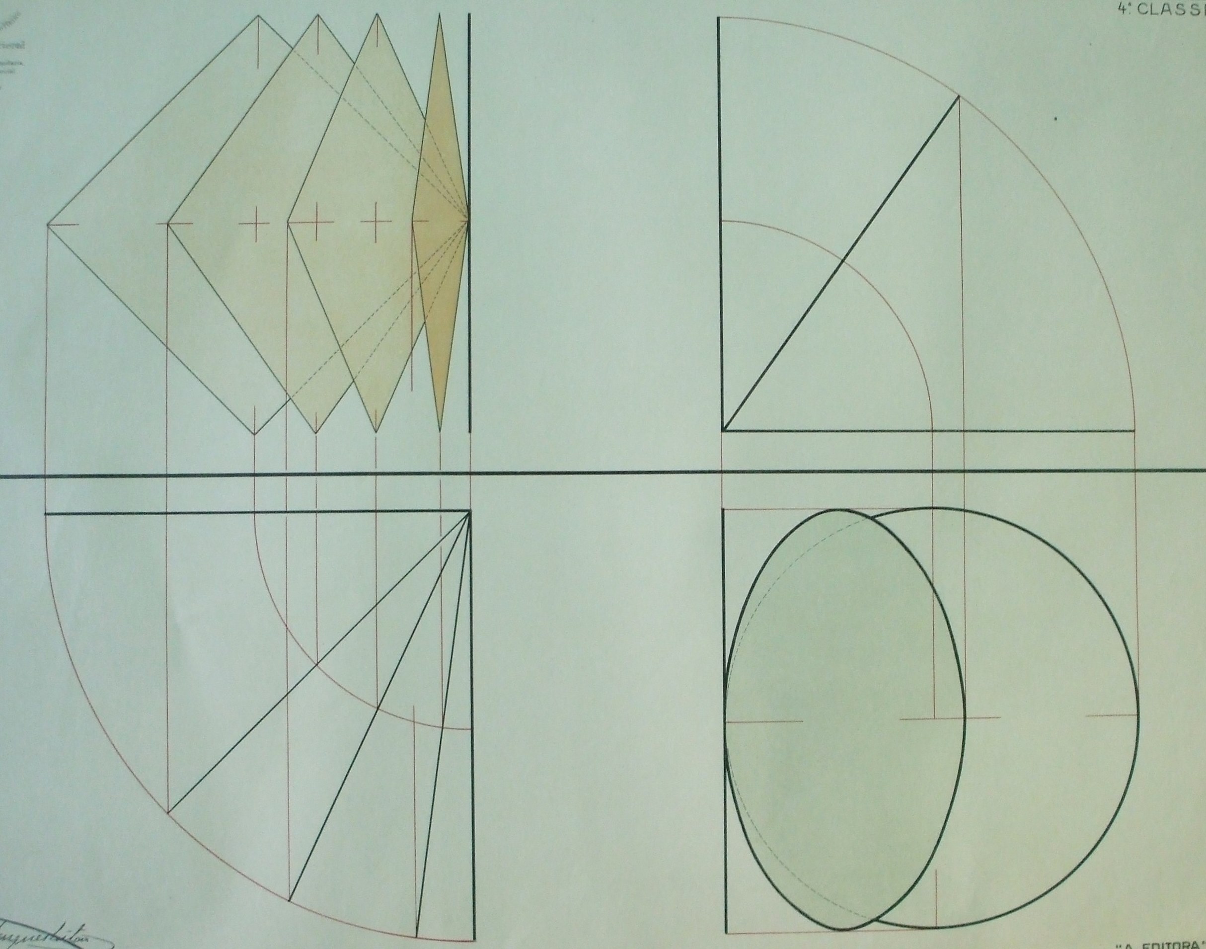 | Descrição: | Estampa 4ª Classe - 2 A estampa contém duas figuras que representam a projeção de um quadrado paralelo ao plano vertical e a projeção de um círculo paralelo ao plano horizontal. |