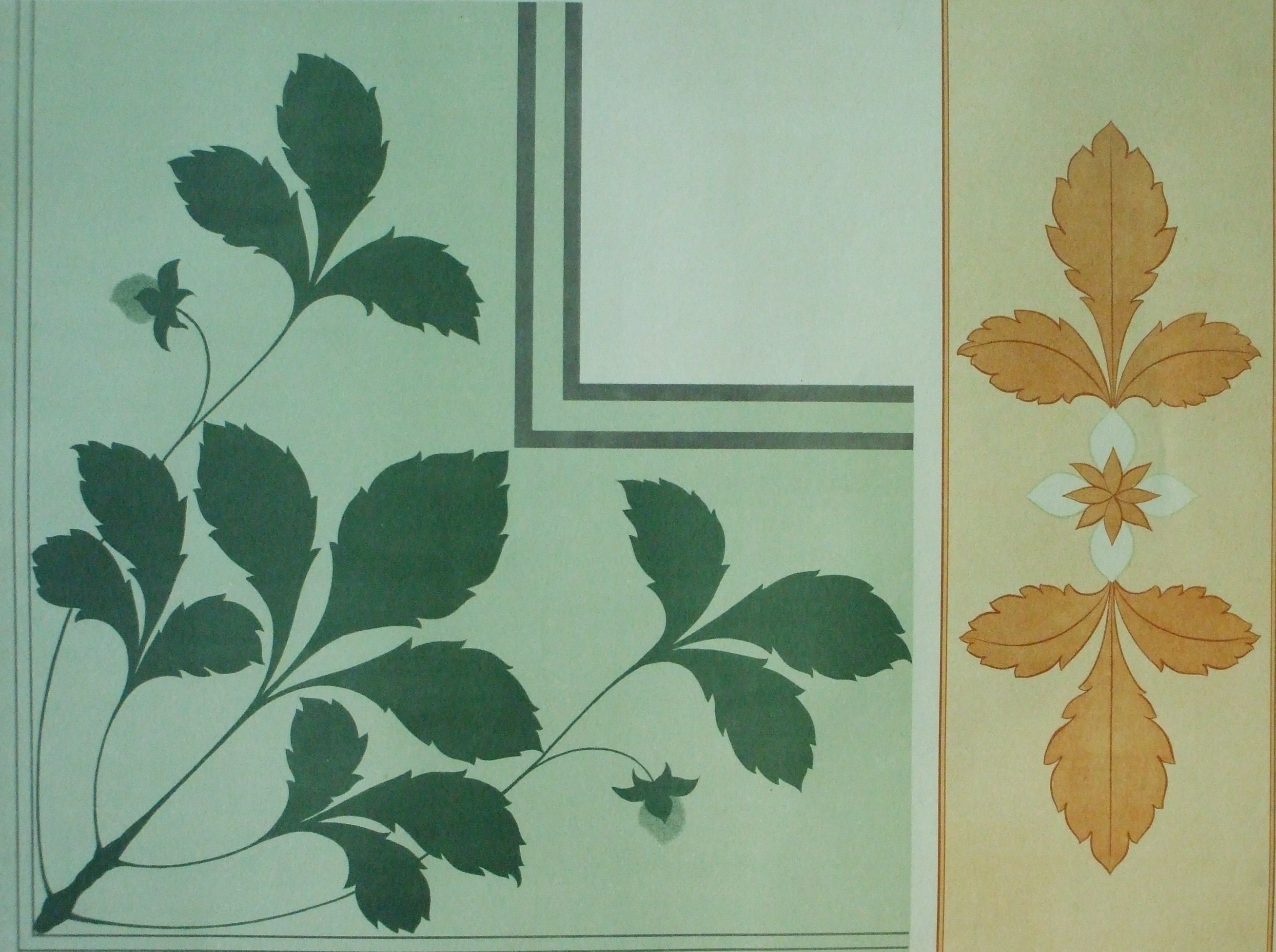 | Descrição: | Estampa 4ª Classe - 54 A estampa contém duas figuras que representam ramos de morangueiros com flores e frutos. |