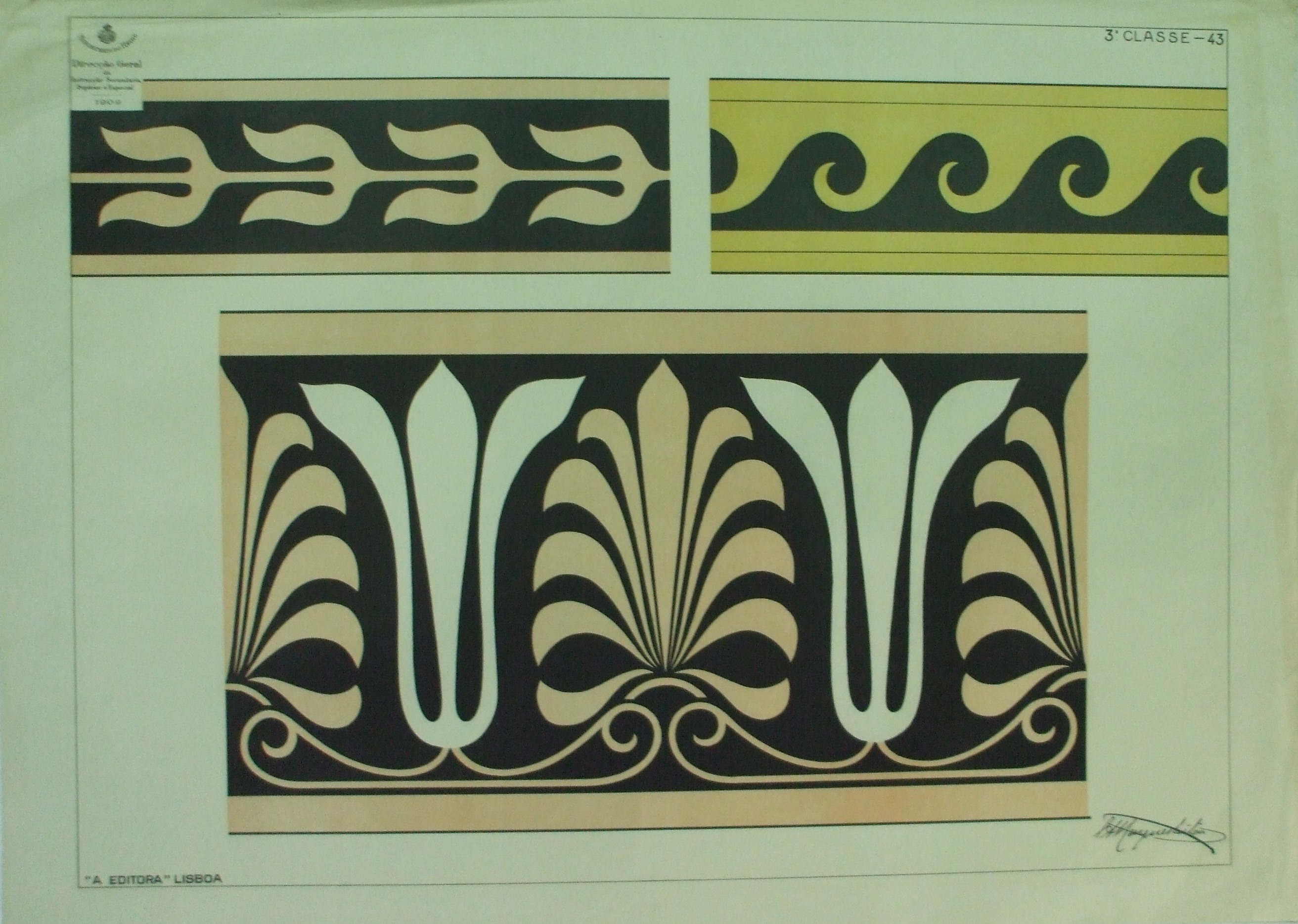 | Descrição: | Estampa 3ª Classe - 43 A estampa possui três motivos decorativos que representam várias aplicações do desenho. Ou seja, apresenta a repetição e a alternação. As duas figuras na extremidade superior foi aplicada a repetição, que consiste na representação do mesmo motivo, que é desenhado seguidamente e com a mesma grandeza. A figura central foi aplicada a alternação, que consiste na representação do desenho do mesmo motivo separado por outro diferente, que sucessivamente repetem-se na mesma grnadeza. |