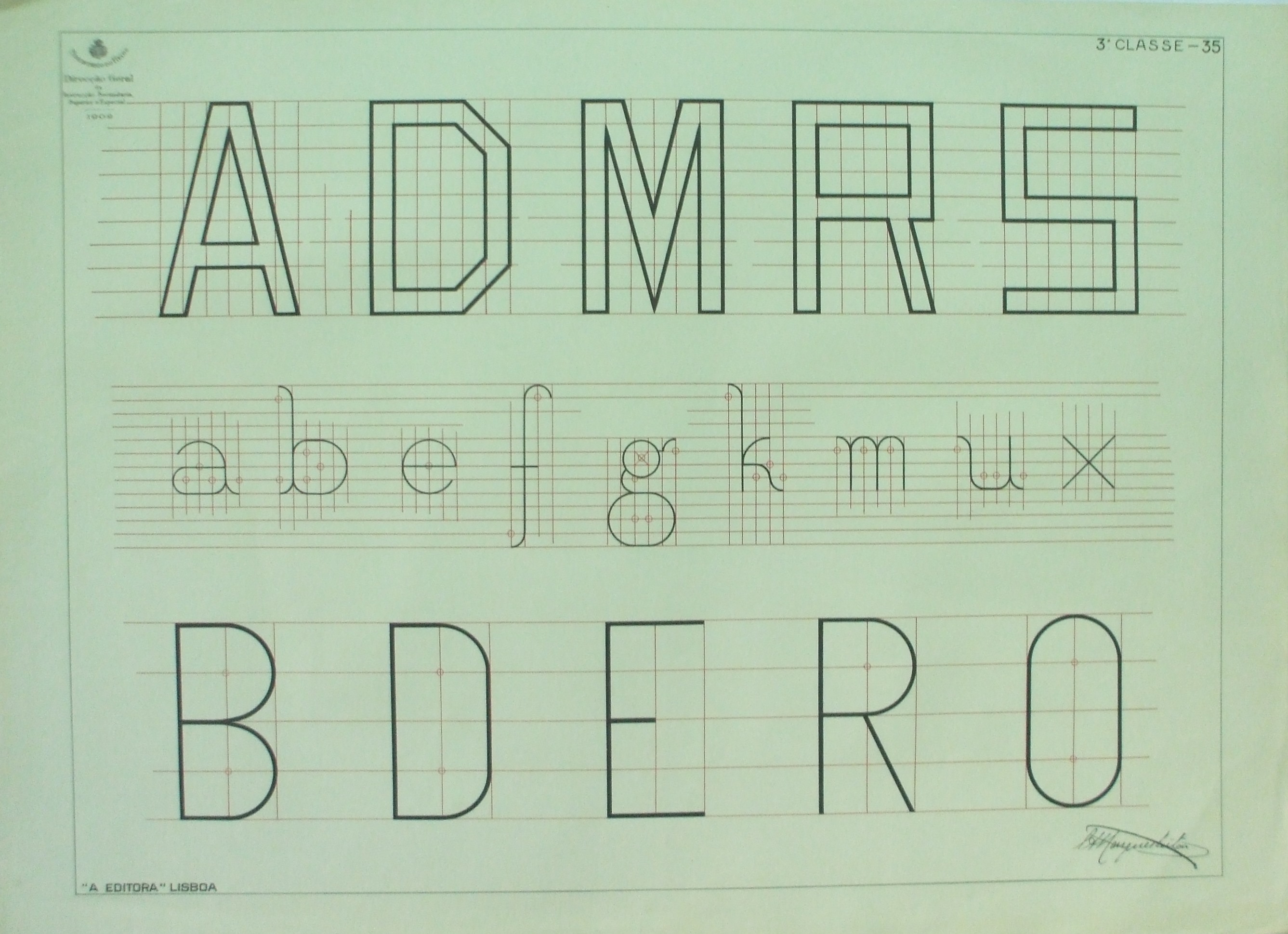 | Descrição: | Estampa 3ª Classe - 35 A estampa representa um traçado de letras com aplicações do desenho geométrico. |