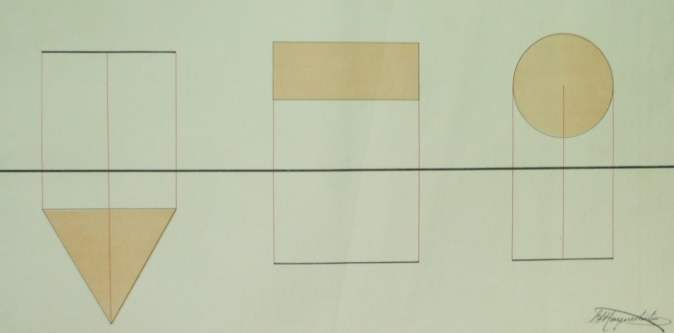 | Descrição: | Estampa 4ª Classe - 1 A estampa contém dois conjuntos de projeções de figuras geométricas, designadamente, as projeções de um triângulo, de um retângulo e de um circulo. Estas projeções apresentam: A superfície triangular apresenta-se paralela ao plano horizontal e é representada neste plano na sua grandeza. A superfície retangular apresenta-se perpendicular ao plano horizontal e paralela ao plano vertical. O círculo é apresentado na perpendicular ao plano horizontal e paralelo ao plano vertical. |