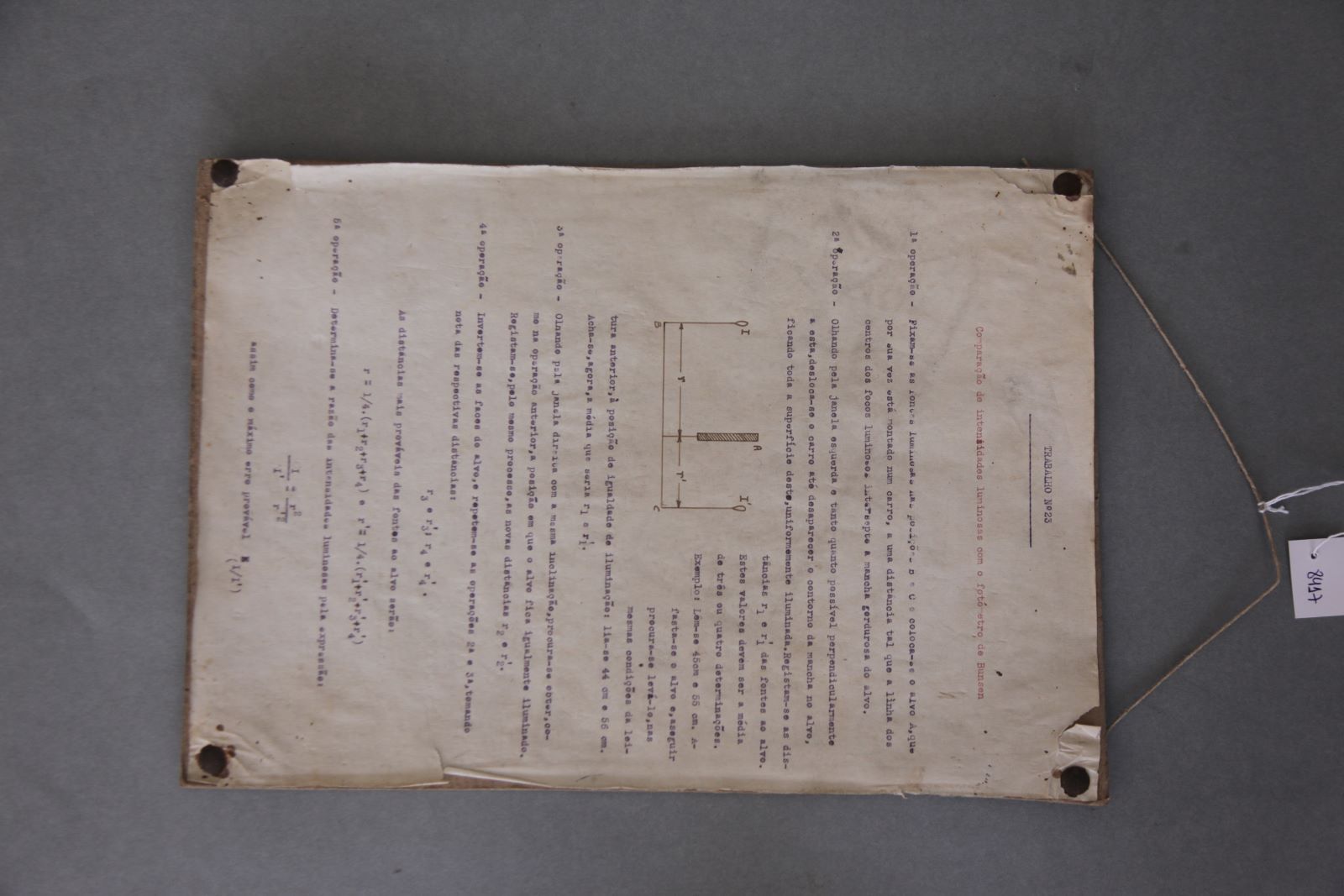 | Descrição: | Representa um conjunto de processos a realizar para comparar as intensidades luminosas com o fotómetro de Bunsen sendo representado algumas equações de modo a auxiliar no entendimento. |
