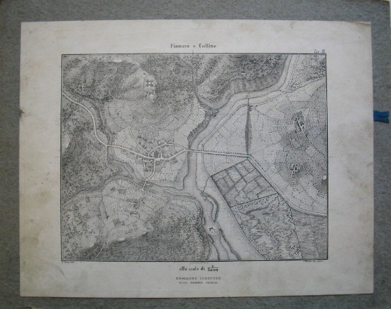 | Descrição: | Estampa colada, posteriormente à sua aquisição, em cartão. Estampa a preto e branco com técnicas de desenho topográfico: planta topográfica a uma escala 1:5000. Legenda: Pianura e colline |