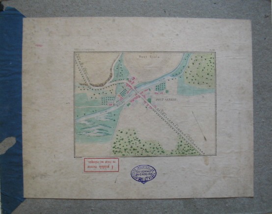 | Descrição: | Estampa colorida colada em cartão. Mostra as cores e sinais convencionais utilizados consoante tipo de terreno e zona hidrica apresentada na planta topográfica. Representa o rio Melada, o monte Gyula, a ponte e o bosque Sereih e as ruas de Vasloui e Farsac a uma escala de 1:10000. Ao centro na zona inferior tem colada (invertida) uma etiqueta de fundo branco e letras e moldura a vermelho que diz: “É prohibido escrever ou riscar nas estampas”. Ao lado direito desta tem um carimbo da 2ª Cadeira do Instituto Industrial do Porto. Legenda: Modéles de topographie. PL.XIII |