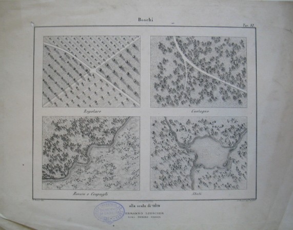 | Descrição: | Tipos de concentrações de árvores à escala 1:1000 Legenda: Boschi |
