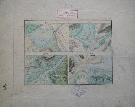 | Descrição: | Representa as cores convencionais utilizadas consoante 4 tipos de terreno ou zonas hidricas nas plantas topográficas, distribuídos por 2 filas com 2 colunas. Ao centro na zona superior tem colada uma etiqueta de fundo branco e letras e moldura a vermelho que diz: “É prohibido escrever ou riscar nas estampas”. Ao centro em baixo tem um carimbo da 2ª Cadeira do Instituto Industrial do Porto. Legenda: Modéles de topographie. PL.IX |