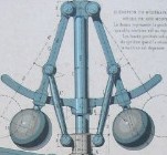 | Descrição: | Estampa para estudo e desenho à vista de regulador de Watt, engrenagem cónica e embolo: traçado geométrico, proporções e materiais. O regulador de Watt é um paralelogramo articulado composto por duas esferas metálicas bastante pesadas, ligadas a dois braços e que se articulam sobre um eixo vertical movido pela máquina. Quando se movimenta, as esferas separam-se tanto mais quanto maior for a velocidade de rotação. O Cilindro e o embolo formam o corpo de bomba da máquina a vapor destinado a utilizar como força motriz a tensão do vapor gerado na caldeira com a qual comunica. A engrenagem cónica emprega-se para transmitir o movimento de um veio para o outro. Tem este nome porque os veios estão em ângulo. Legenda: Études de dessin au lavis |