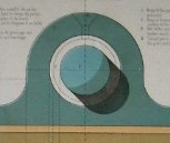 | Descrição: | Estampa para estudo e desenho à vista, por meio de proporções, de chumaceira e moente de ferro com suporte em bronze: planta e alçado Legenda: Études de dessin au lavis |