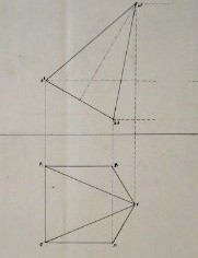 | Descrição: | Projecções ortogonais duma pirâmide recta de base quadrada inclinada aos dois planos de projecção. |