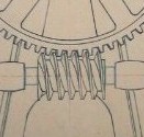 | Descrição: | Desenho representando, através de vista frontal com representação da direcção dos dentes e proporções geométricas, uma engrenagem com parafuso de filete quadrangular engrenado com uma roda, cujos dentes têm a mesma inclinação da rosca, ou seja de um parafuso sem fim. Parafuso sem fim: parafuso de filete quadrangular engrenado com uma roda, cujos dentes têm a mesma inclinação da rosca. Este parafuso transmite o movimento circular continuo entre dois veios que não estejam situados no mesmo plano. |