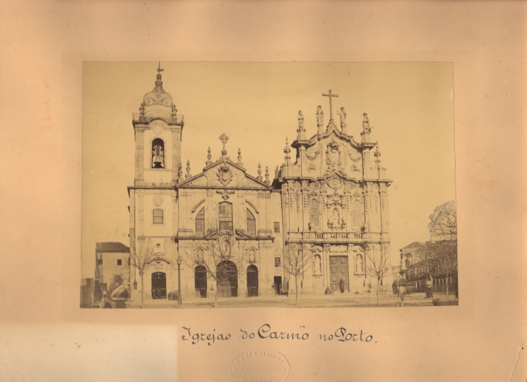| Observações: | A fotografia tem selo branco do fotógrafo no centro da margem inferior da moldura, onde se lê «M. J. de S. FERREIRA/ PHOTOGRAPHO/ PORTO». Por cima do selo branco (ainda na margem inferior), está titulada, em corsiva (a pena): «Igrejas do Carmo no Porto.» Existem dois carimbos do Instituto Superior de Engenharia do Porto no verso da moldura. |