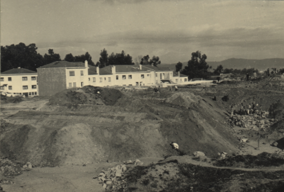 | Descrição: | Perspectiva sobre o aglomerado de habitações sociais do Outeiro, no Porto, ainda durante a fase de construção. Fazia parte do «Plano de Melhoramentos para a cidade do Porto» (1956-1966), anunciado em Março de 1956, pelo Ministro das Obras Públicas, Arantes e Oliveira, e inclui os bairros de São Roque da Lameira, Agra do Amial, Outeiro, Engenheiro Arantes e Oliveira, Fonte de Moura, Regado, Carriçal, Carvalhido, Pasteleira, Cerco do Porto, Fernão de Magalhães, Bom Sucesso e Pio XII. O objectivo era construir 6000 fogos em dez anos. Foram construídos 6072, nesse período. |