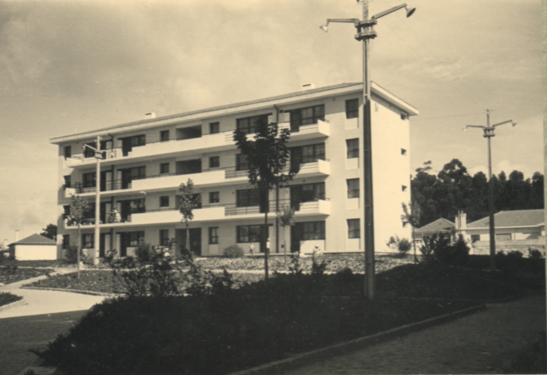 | Descrição: | Vista dos edifícios do Bairro Social do Bom Sucesso, no Porto. Fazia parte do «Plano de Melhoramentos para a cidade do Porto» (1956-1966), anunciado em Março de 1956, pelo Ministro das Obras Públicas, Arantes e Oliveira, e inclui os bairros de São Roque da Lameira, Agra do Amial, Outeiro, Engenheiro Arantes e Oliveira, Fonte de Moura, Regado, Carriçal, Carvalhido, Pasteleira, Cerco do Porto, Fernão de Magalhães, Bom Sucesso e Pio XII. O objectivo era construir 6000 fogos em dez anos. Foram construídos 6072, nesse período. |