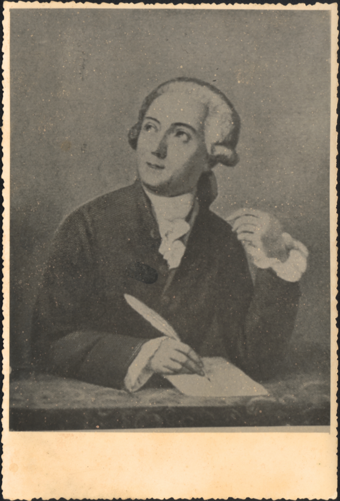 | Descrição: | Reprodução fotográfica da pintura de Lavoisier (a preto e branco), com ar pensativo, envergando uma pena sobre uma folha de papel. Antoine-Laurent Lavoisier (1743-1794), nobre francês, reputado na história por ser considerado o pai da Química moderna. Foi decapitado, em 1794, depois de ter sido injustamente condenado por traição. |