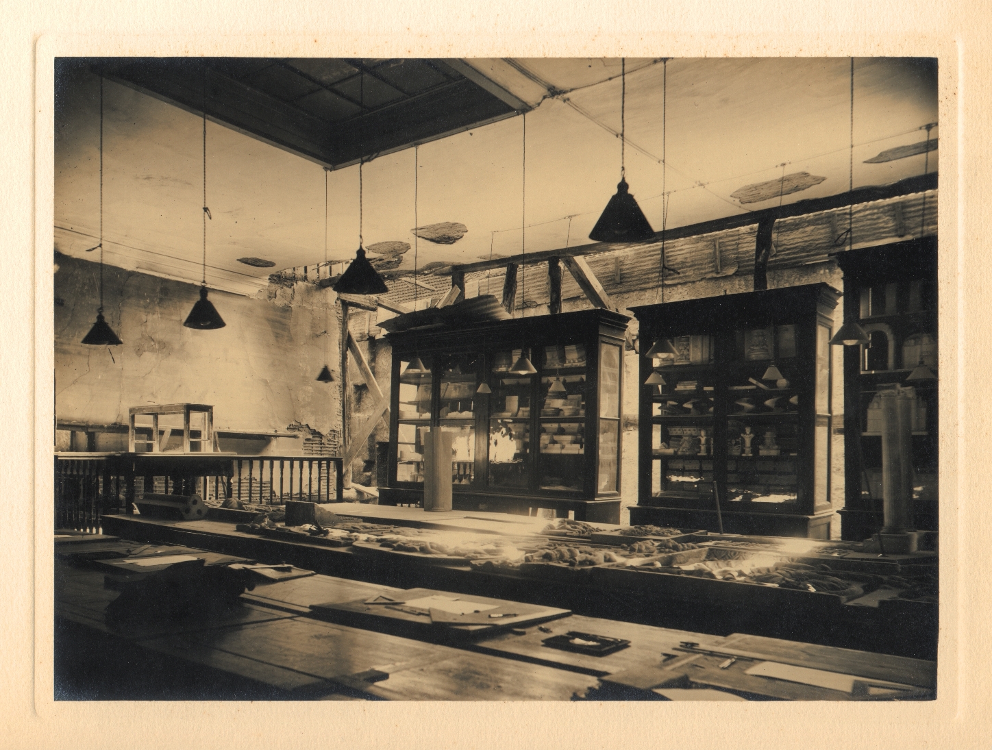 | Descrição: | Sala de aula da Academia Politécnica do Porto, onde se vêem mesas a todo o comprimeno, com diversos elementos auxiliares de desenho (réguas, esquadros,...) e moldes de elementos decorativos. Ao fundo, uma brecha de grandes dimensões abre-se na parede, atrás dos armários, mostrando um muro exterior e a estrutura da parede estucada. O tecto está apoiado em diversos vãos de madeira. Os armários guardam moldes de capitéis e socos e outros motivos arquitectónicos. |