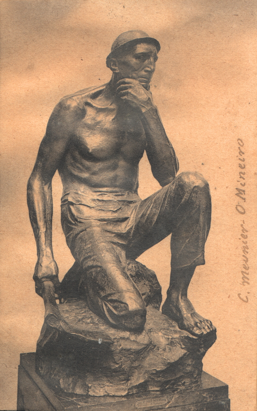 | Observações: | Na parte da frente, ao longo da margem direita, está escrito «C. Meunier - O Mineiro». No verso, apresenta uma estrutura de bilhete postal (quatro linhas horizontais, à esquerda, e uma vertical, ao centro, que divide o verso). Do lado esquerdo, na margem inferior, está impresso «Constantin Meunier (1831-1905)/ Le Mineur à la hache. - The Pickminer.» No canto superior direito, está escrito a lápis «3». |