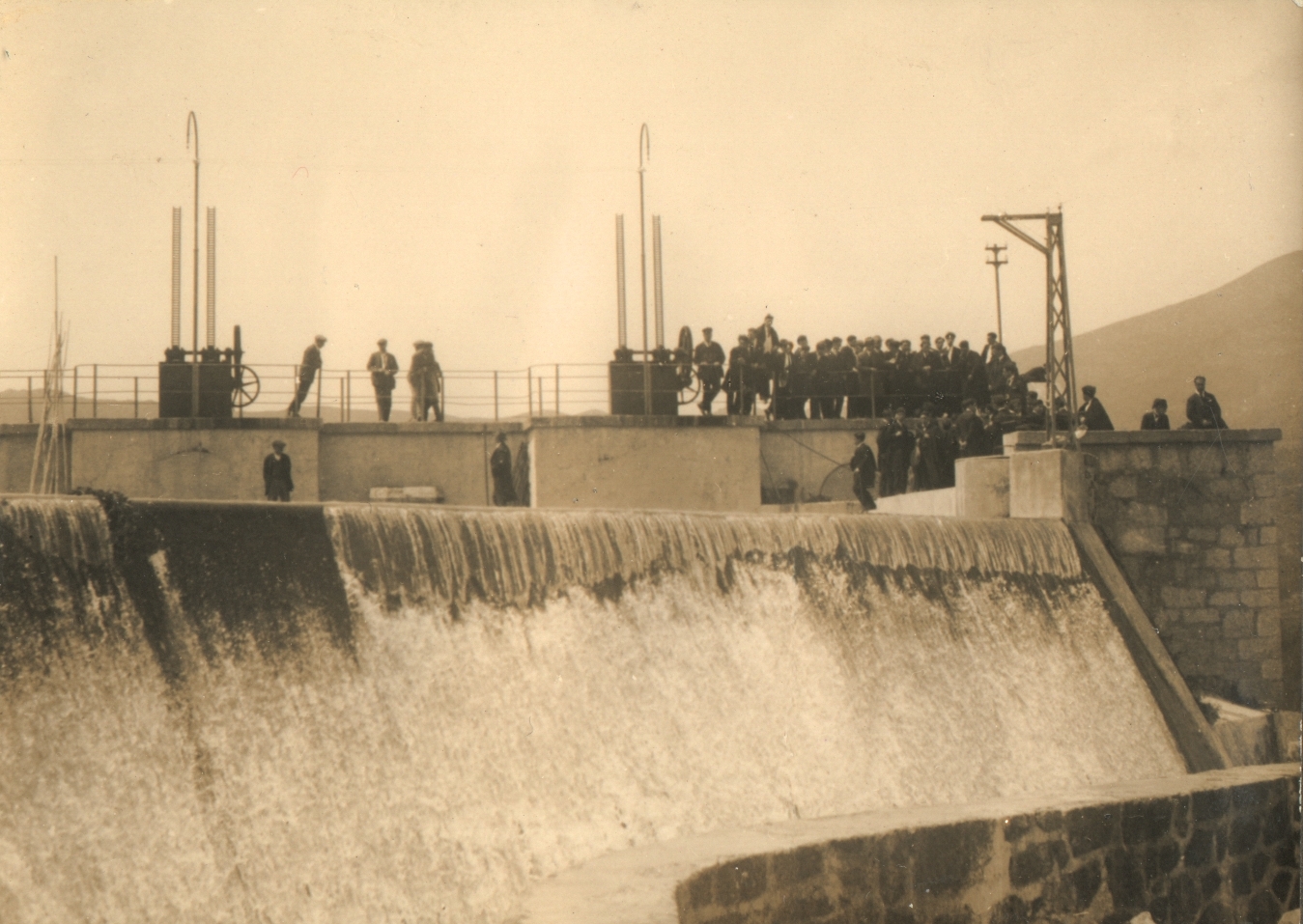 Pormenor da barragem do Lindoso. Em segundo plano, vê-se o grupo de estudantes e professores que participaram na excursão ao Minho de Junho de 1929.