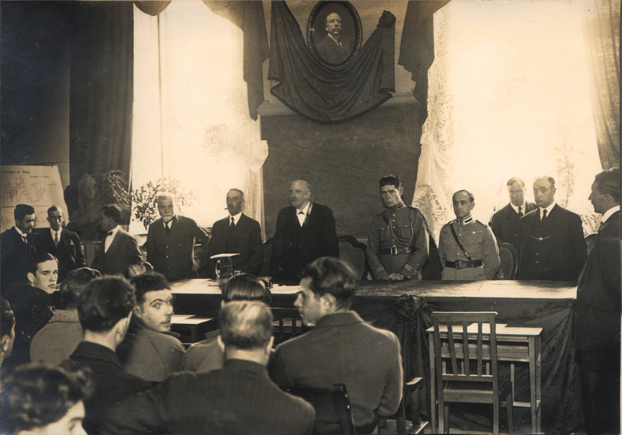 | Descrição: | Pormenor da sessão de homenagem ao Professor João Augusto Ribeiro, em 15 de Fevereiro de 1929, no Porto. Ao centro da mesa, preside o Professor Alfredo Henrique da Silva (1872-1950). Na parede atrás do mesmo, está pendurado o retrato do professor homenageado. |