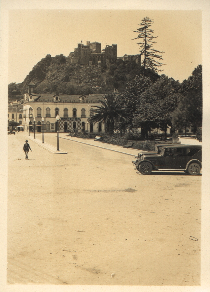 | Descrição: | Vista panorâmica do Castelo de Leiria. Na praça, vê-se a fachada de um edifício, onde se lê «LOJA NOVA». O Castelo de Leiria é uma fortificação medieval, que data da primeira metade do século XII, tendo sido, possivelmente, construída aproveitando uma alcáçova já existente. |